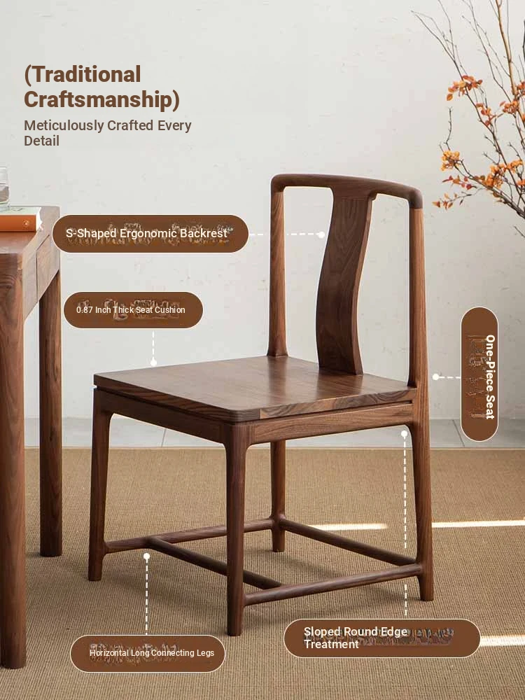 Stylish Solid Wood Dining Chair - Modern Minimalist Design for Home Dining Room, Comfortable Soft-Padded Backrest, Elegant Luxury Feel