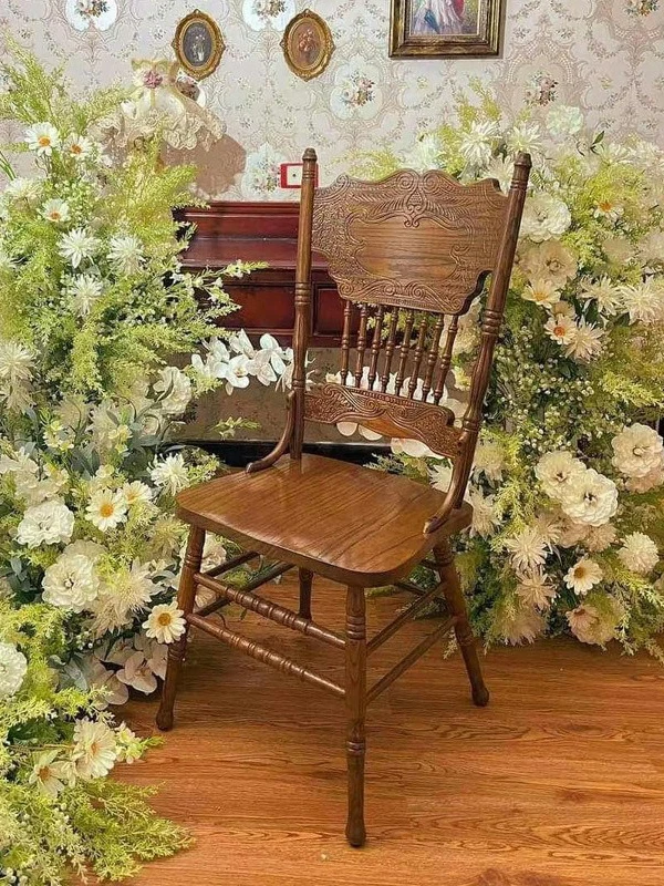 French Vintage Dining Chair - Solid Wood Luxury 2025 New Style, Retro American Design with Comfortable Backrest, Perfect for Home Dining Rooms