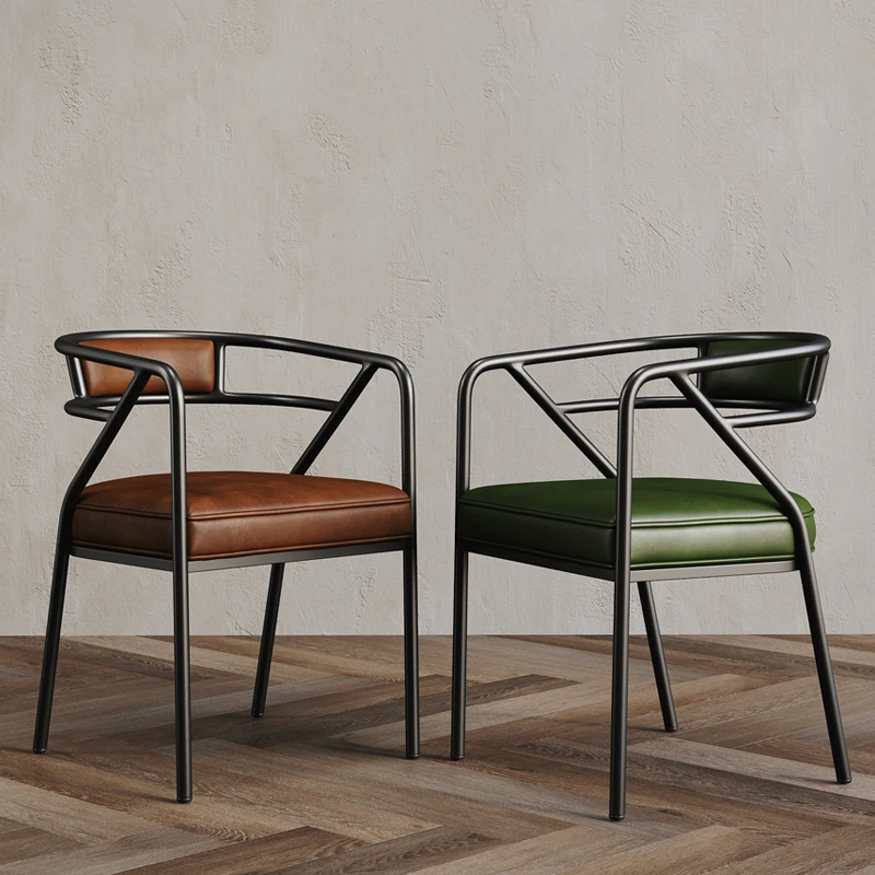 家庭用のスタイリッシュなダイニングチェア - 背もたれ付きのカウホーンデザイン、シンプルでおしゃれ!人気のアイアン製、北欧風の木目調チェアで、あなたの食卓を引き立てます。