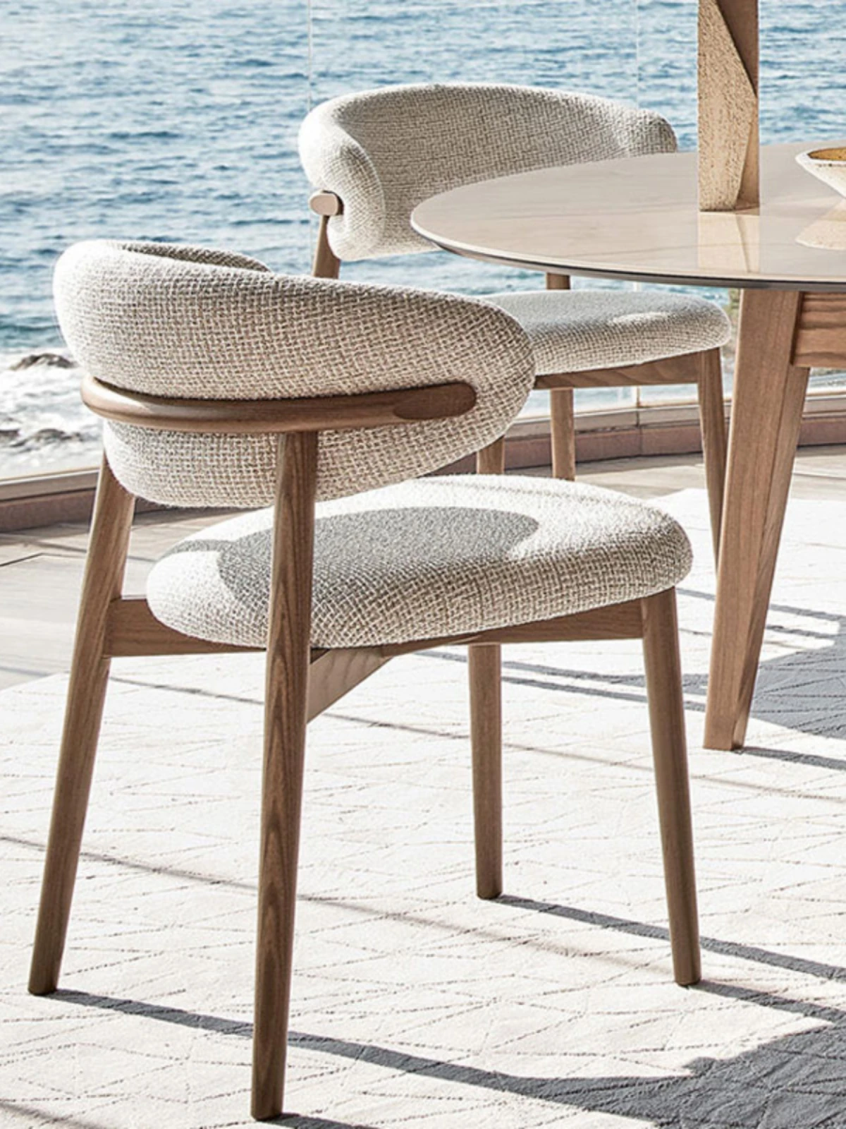 北欧スタイルの本物の無垢材ダイニングチェア|モダンでシンプルなデザイン|ホワイトアッシュの背もたれ|カフェや家庭用に最適なリッチな雰囲気を演出するダイニングセット