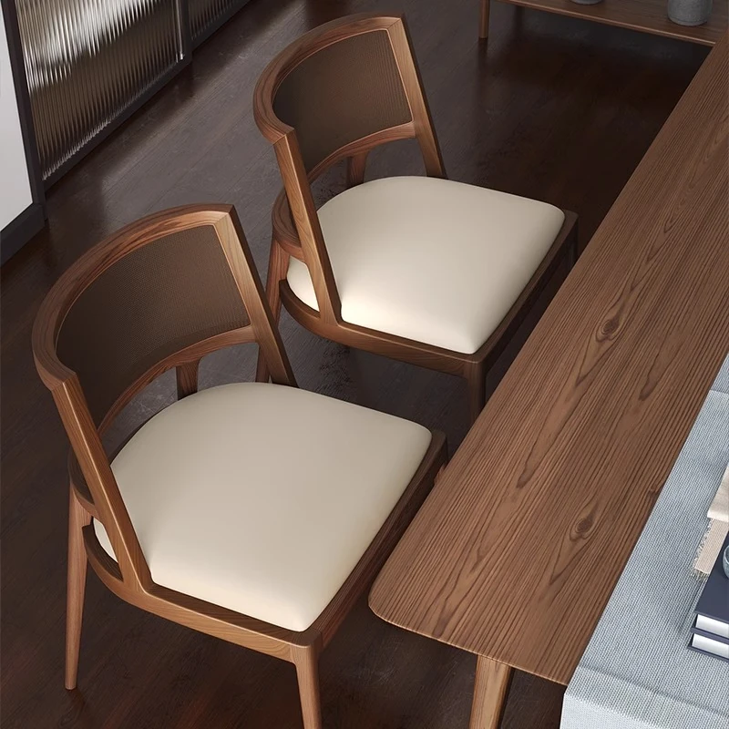 デザイナーによるシンプルでモダンな実木製ダイニングチェア。快適なソフトパック背もたれ付きで、上品な軽奢スタイル。家庭用ダイニングルームにぴったりの魅力的な選択!