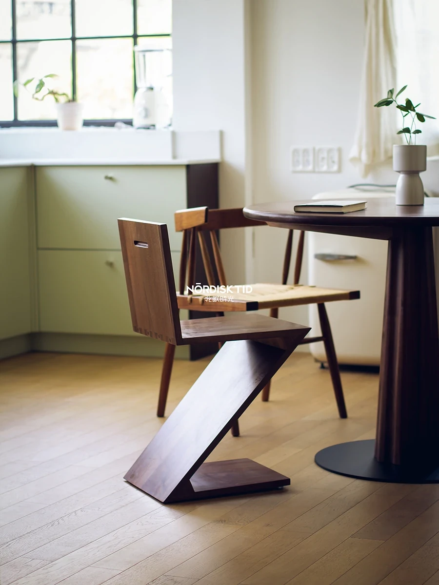 Original Replica Zigzag Chair - Nordic Minimalist Solid Wood Creative Dining Chair, Designer Vintage Z-Chair