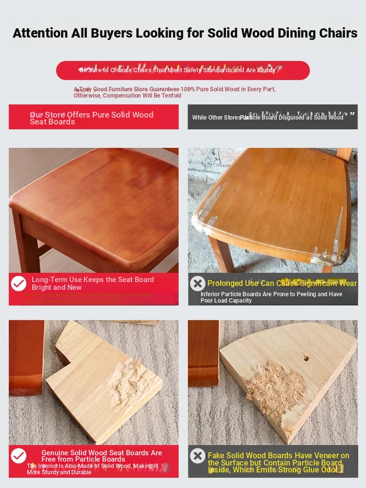 Premium Solid Wood Dining Chair - Thickened Modern Minimalist Design for Home and Hotel Restaurants - Comfortable Walnut Color Backrest Stool