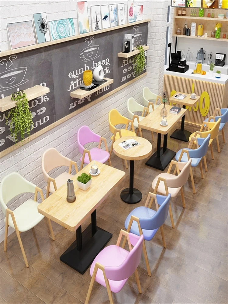 Nordic Style Faux Wood Iron Dining Chair for Milk Tea Shop - Modern Minimalist Home Stool with Backrest, Trendy INS Design