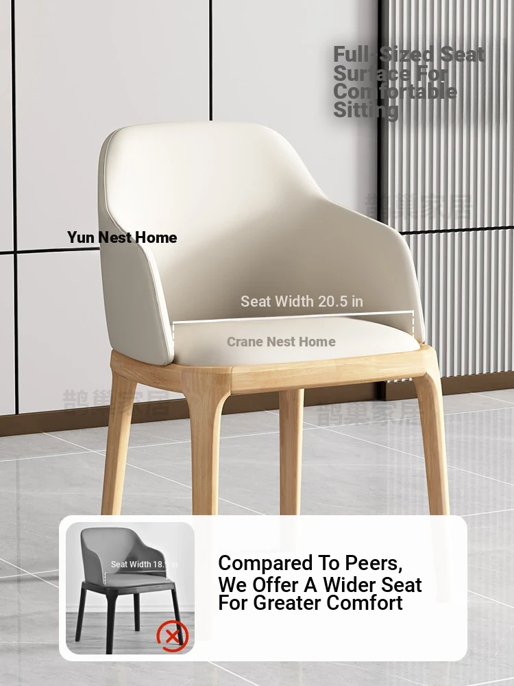 Creamy Saddle Leather Dining Chair - Scandinavian Modern Minimalist Design for Home and Hotel Restaurants - Comfortable Backrest for Long Sitting