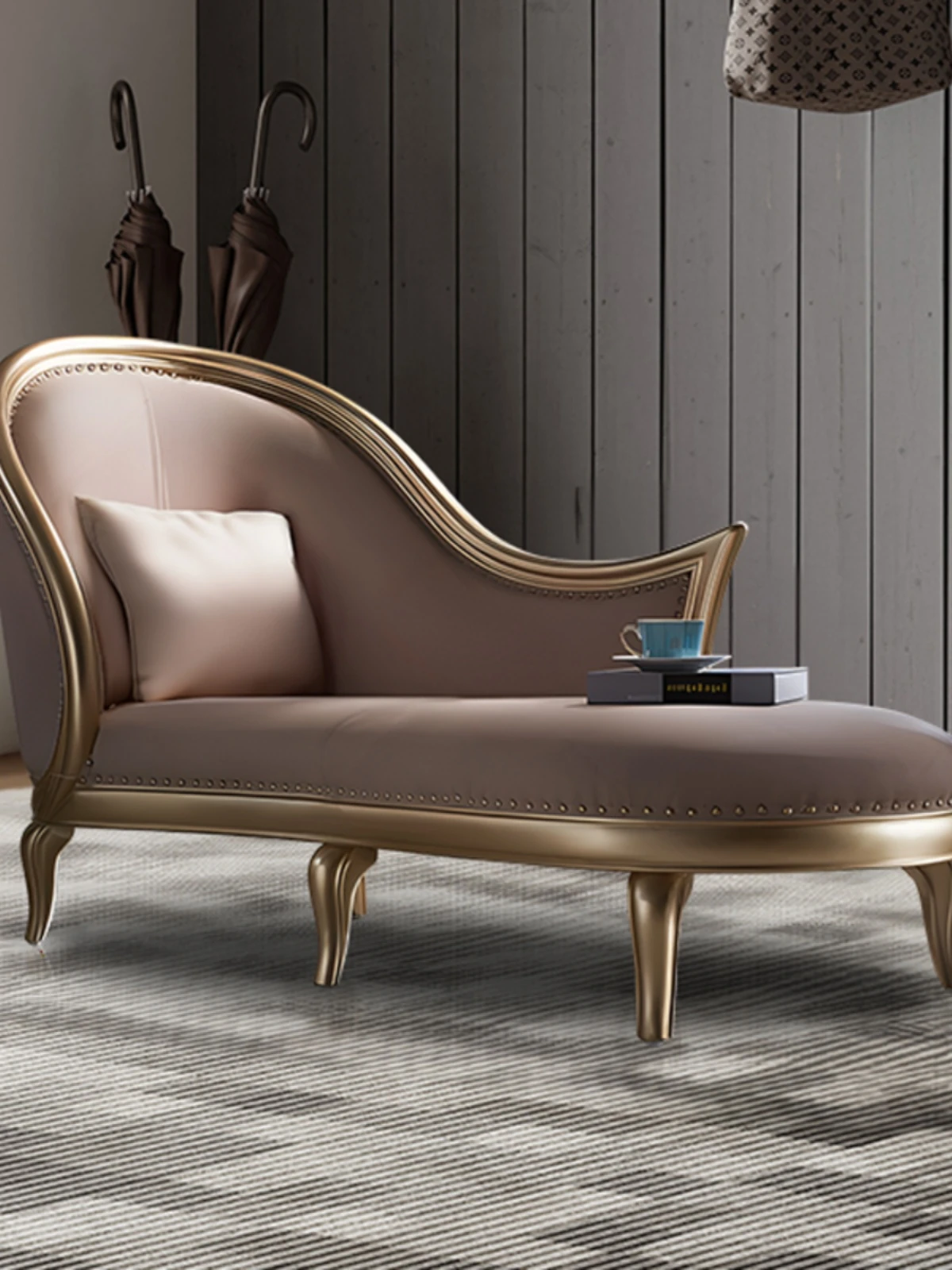 European-Style Solid Wood Hand-Carved French Noble Fabric Chaise Lounge – Elegant and Comfortable Recliner Chair for Relaxation and Leisure
