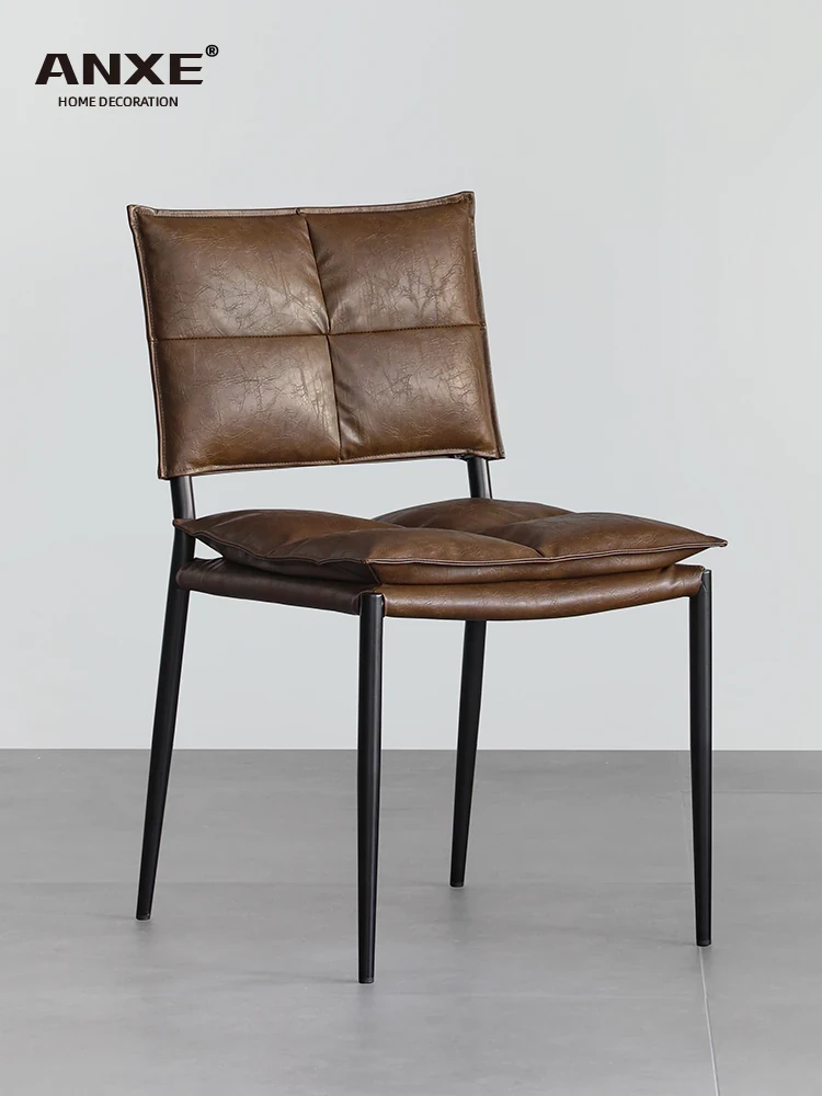 Premium American Genuine Leather Soft Back Dining Chair - Creative Metal Design for Comfort and Vintage Style by Original Designer