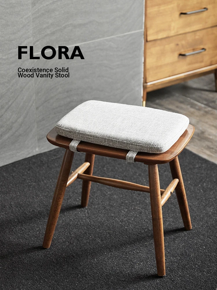 DOJUS Wooden Makeup Stool - Simple and Stylish Square Vanity Seat with Fabric Cushion for Bedroom and Home Use