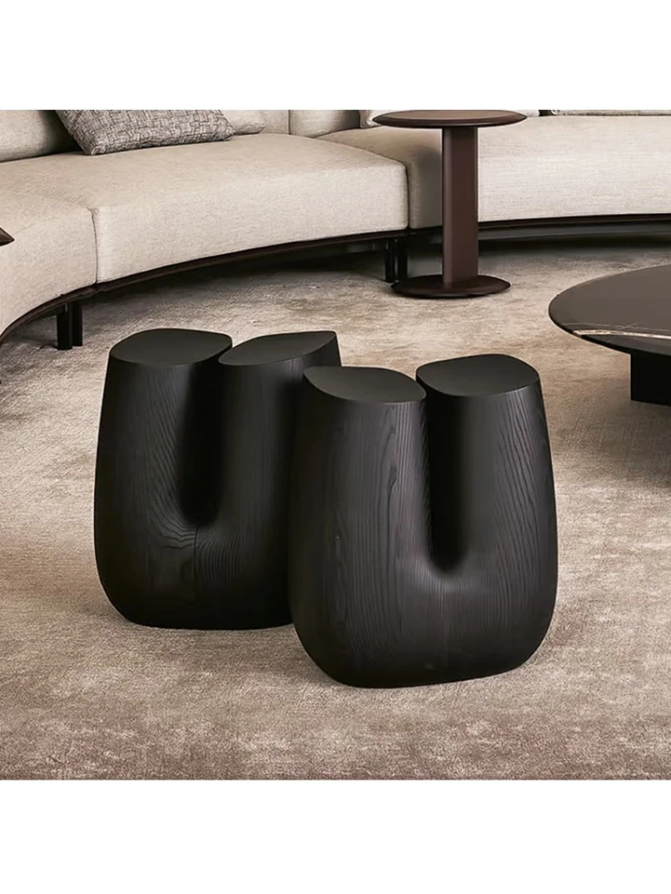 Poliform Italian Minimalist Solid Black Oak Stool - Creative UBE Bedside Table and Dressing Stool for Bedroom