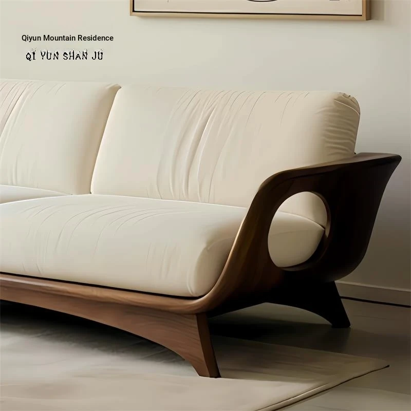 2025 Designer New Style Black Walnut Sofa - Elegant Chinese Modern Fabric Sofa for Living Room, Perfect for Villa Furniture