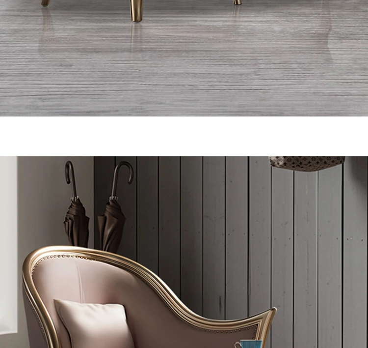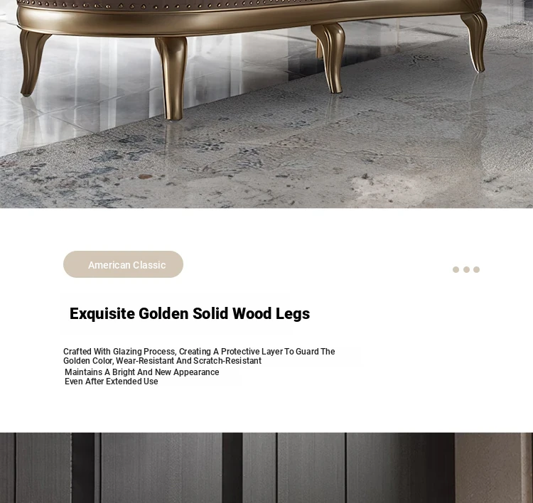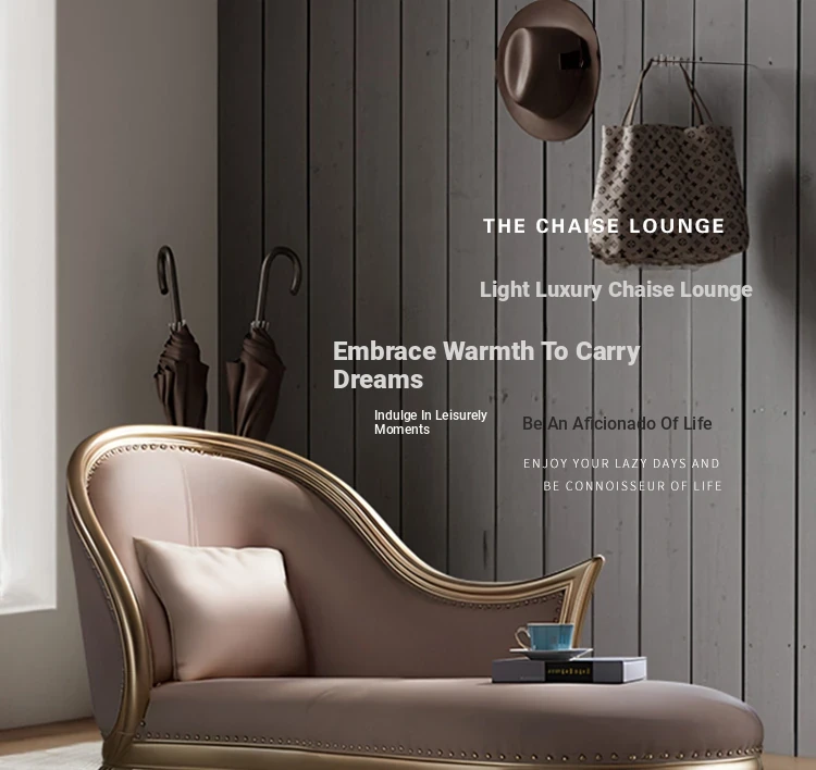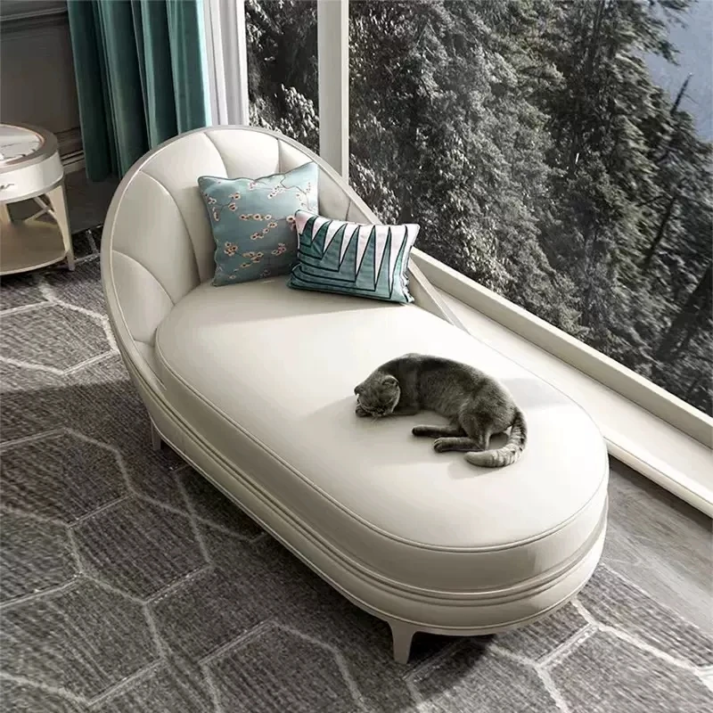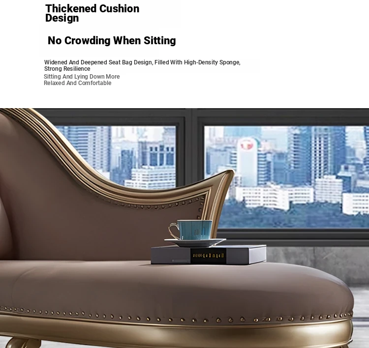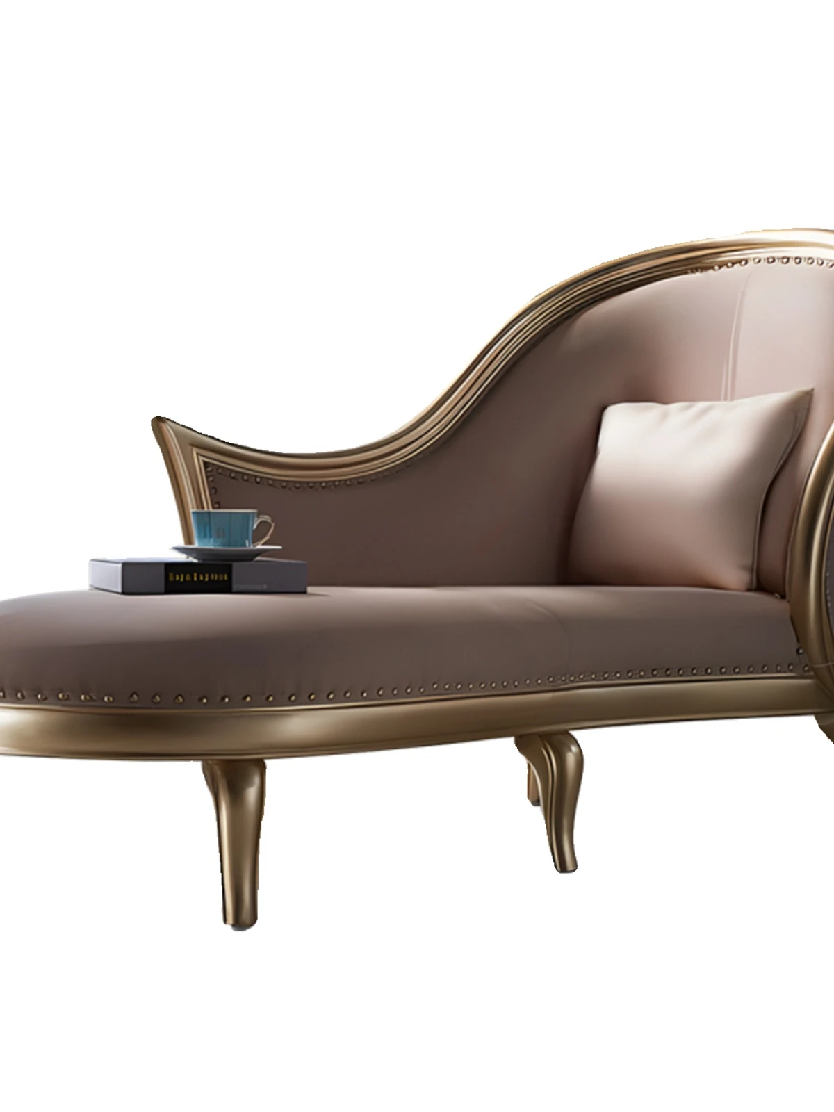 American Luxury Style Solid Wood and Faux Leather Chaise Lounge - Elegant European Single Sofa Bed for Living Room and Bedroom, Perfect for Model Homes and Relaxation.