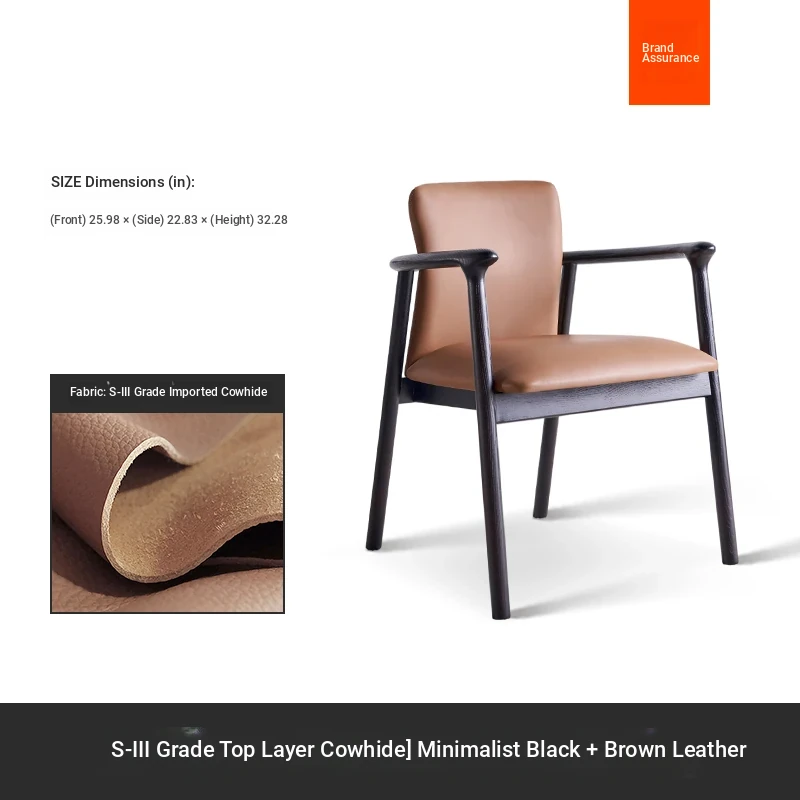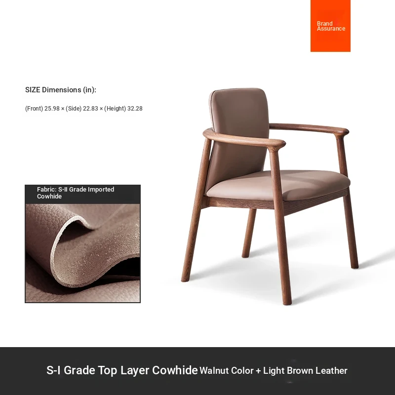 AOEZI Luxury Armchair - Premium Solid Wood & Genuine Leather Soft Upholstery for High-End Hotels, Villas, and Restaurants - Elegant Dining & Tea Table Chair