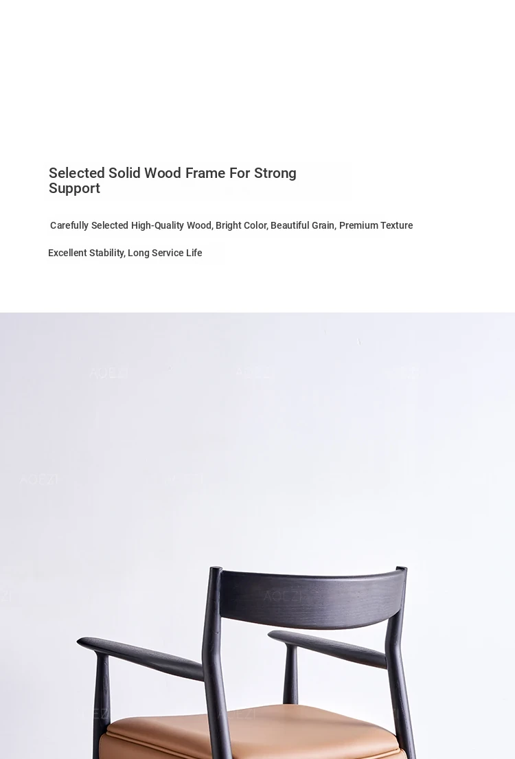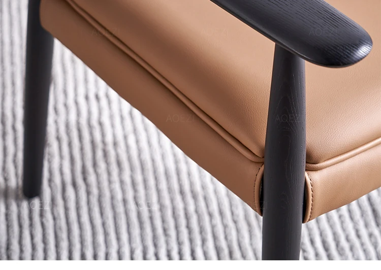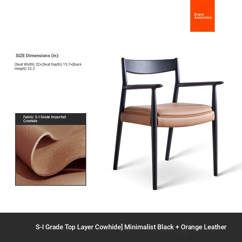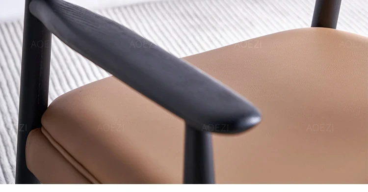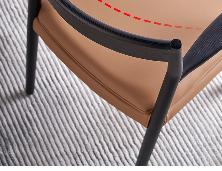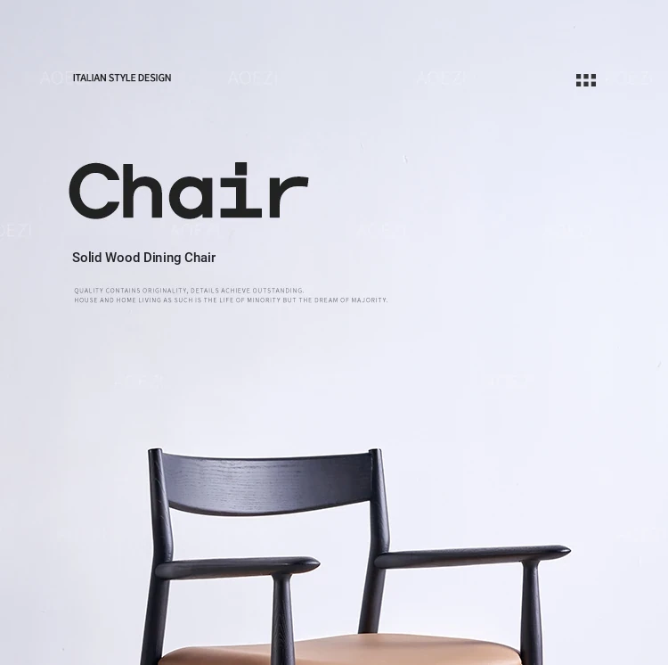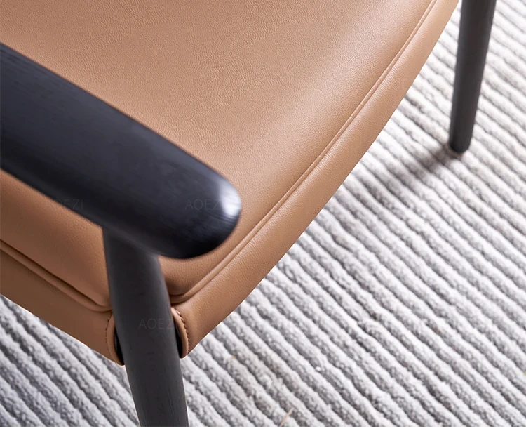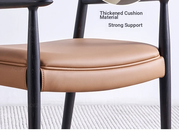 AOEZI Nordic Solid Wood Dining Chair - Minimalist Retro Armchair with Italian-inspired Modern Design, Soft Leather Upholstery, Perfect for Stylish Dining Spaces.