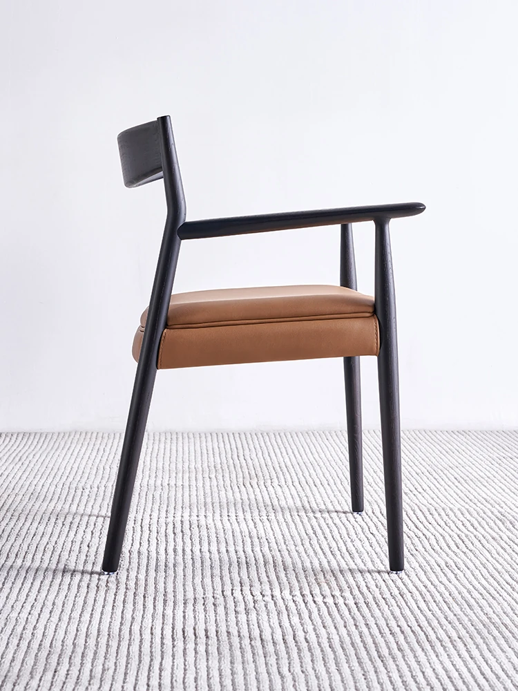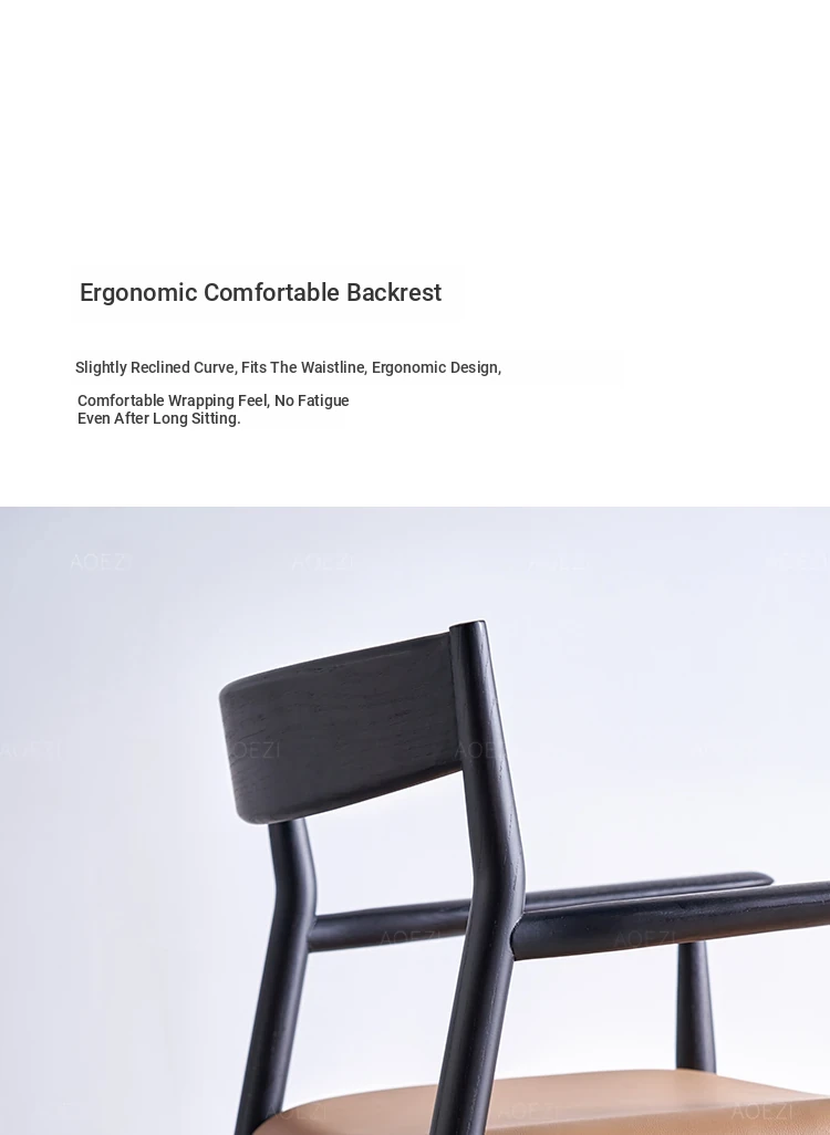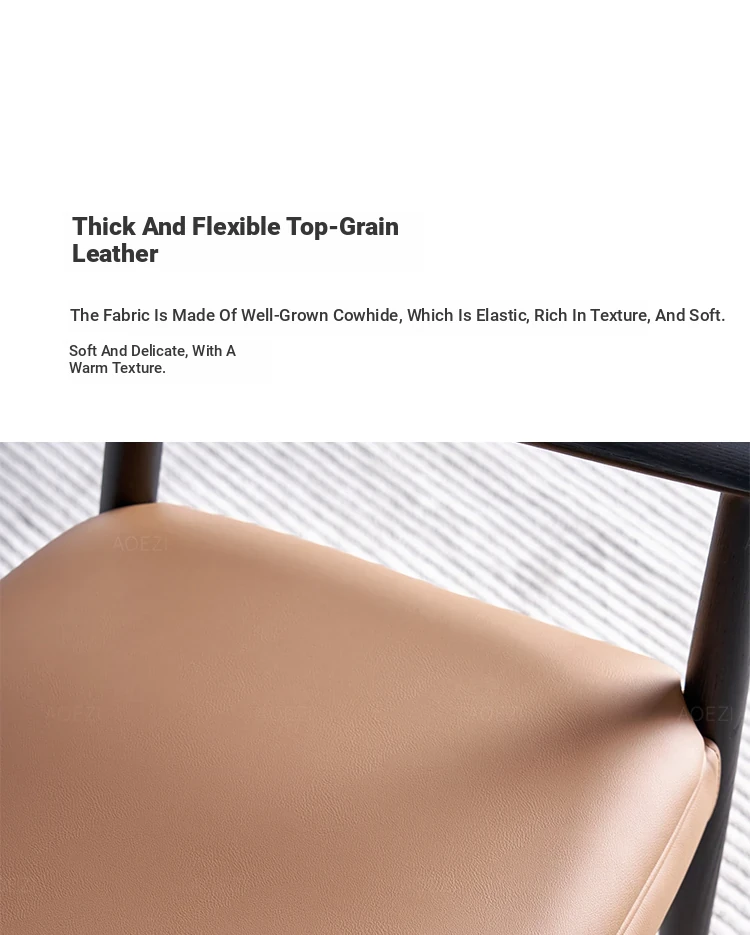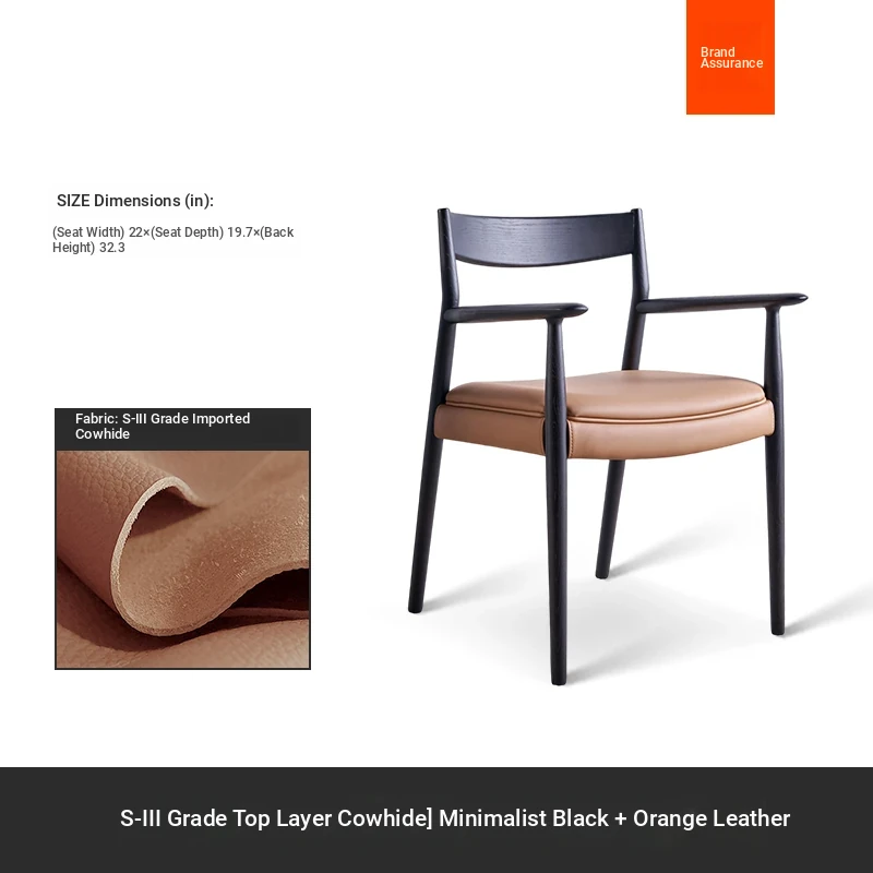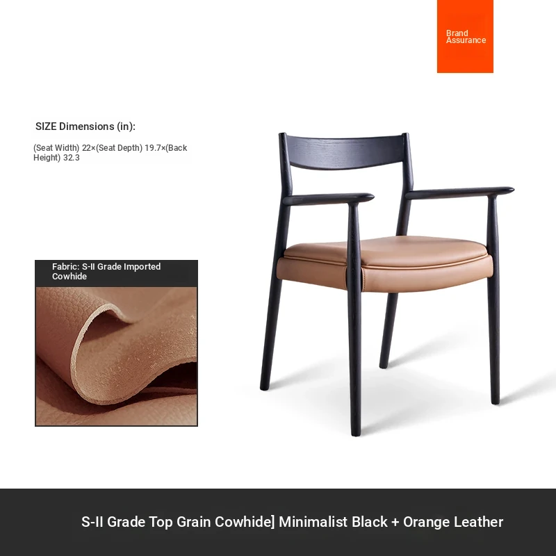 AOEZI Nordic Solid Wood Dining Chair - Minimalist Retro Armchair with Italian-inspired Modern Design, Soft Leather Upholstery, Perfect for Stylish Dining Spaces.