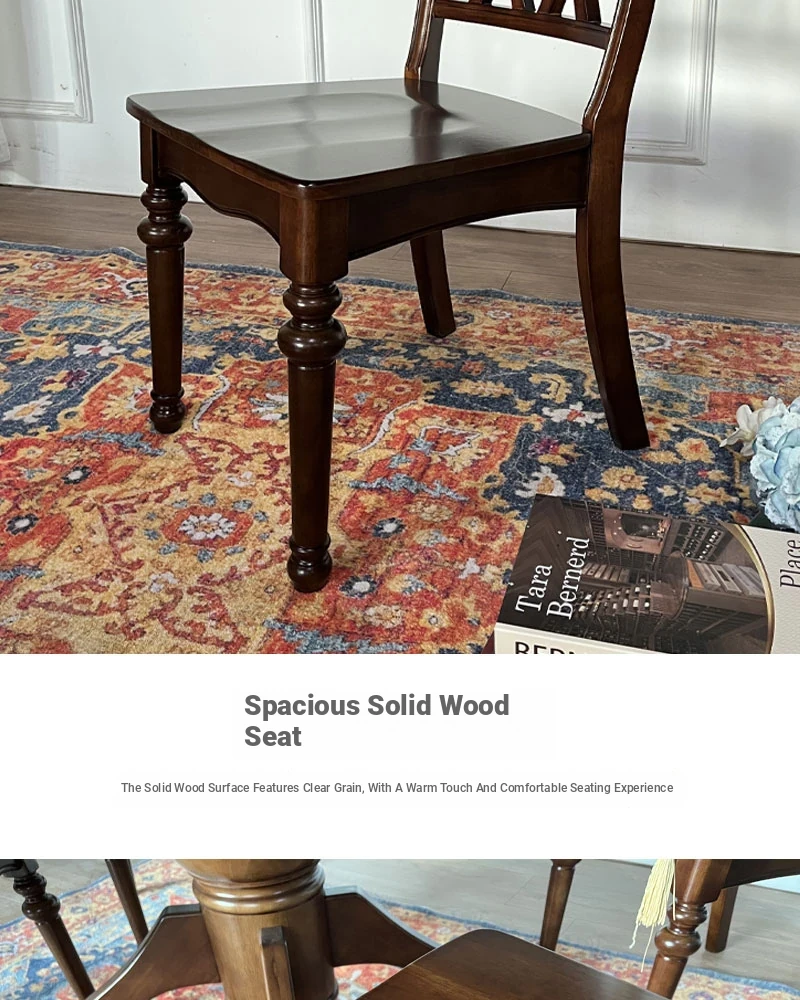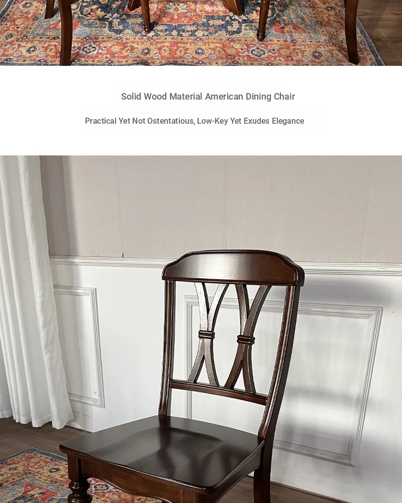 Autumn Forest Solid Wood American Style Dining Chair - Elegant Double Cross Design, Full Solid Wood Construction, Walnut Finish, Perfect for Home Use.