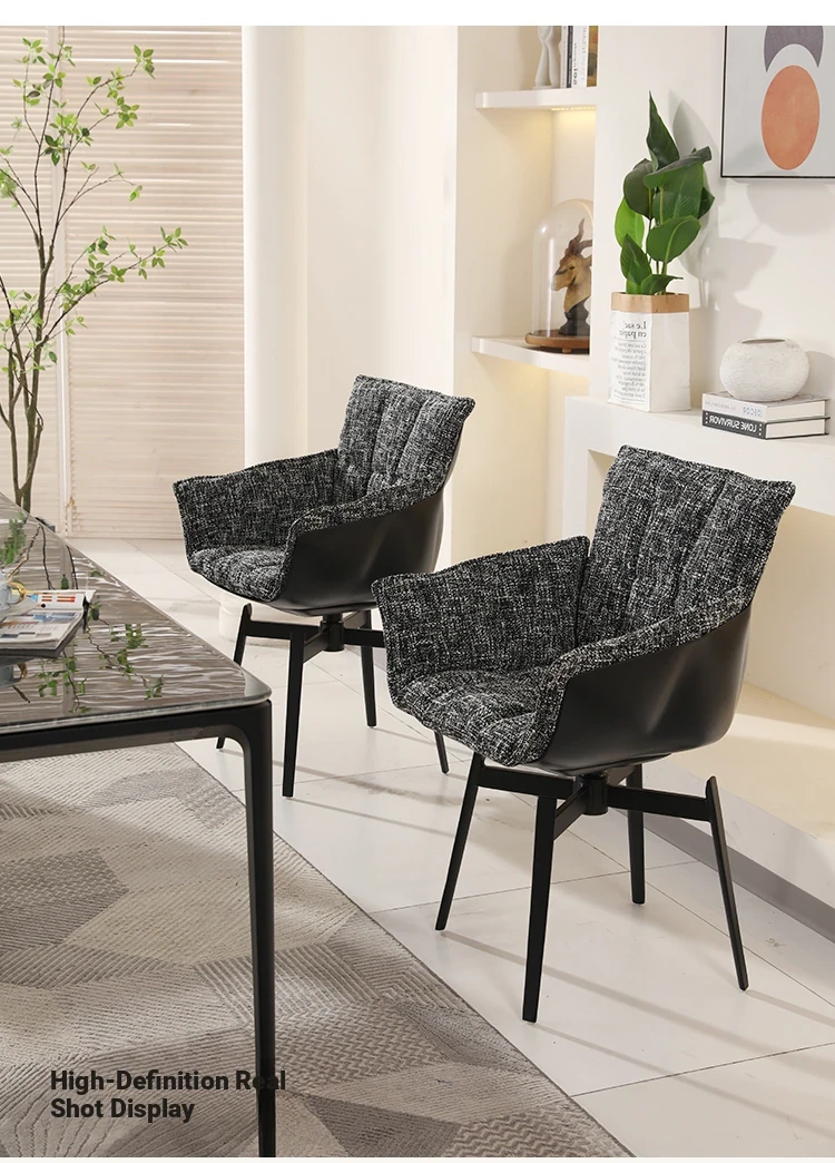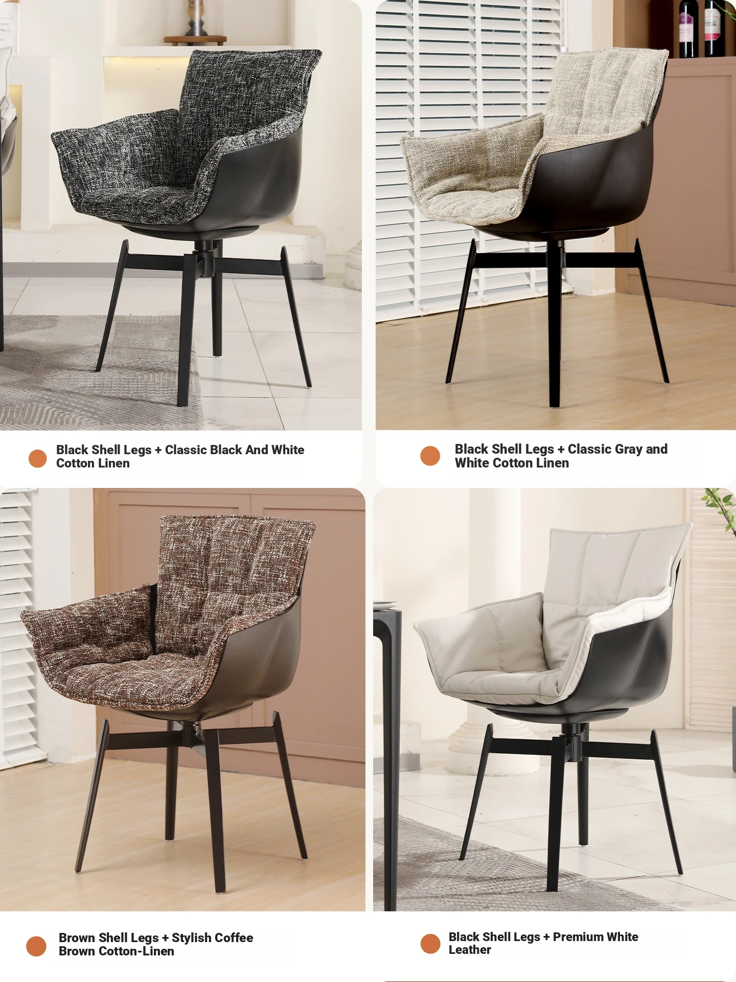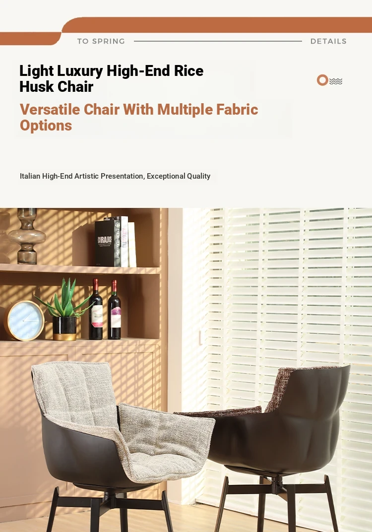 B&B Rice Husk Chair - Italian Minimalist Design, Swivel High-End Dining & Desk Chair, Luxurious Upholstered Makeup Chair for Contemporary Spaces