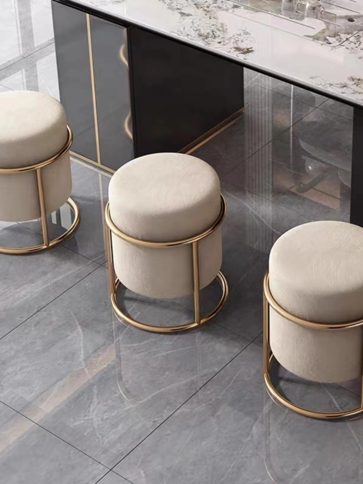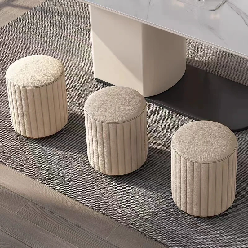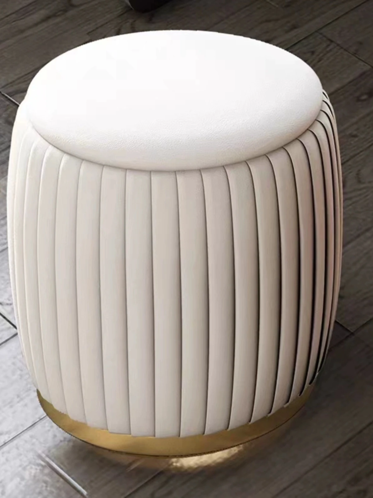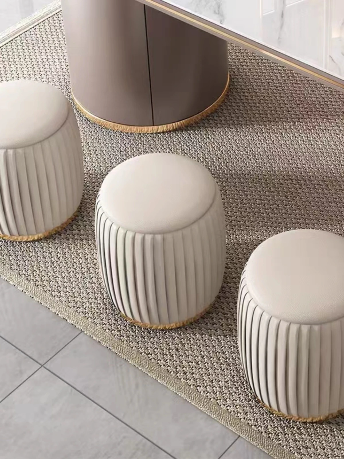 Chic Creamy Round Stool - Stylish Makeup Vanity Seat, Stainless Steel Shoe Bench, Versatile Coffee Table Stool for Home Use, Perfect for Dressing Up and Relaxing.