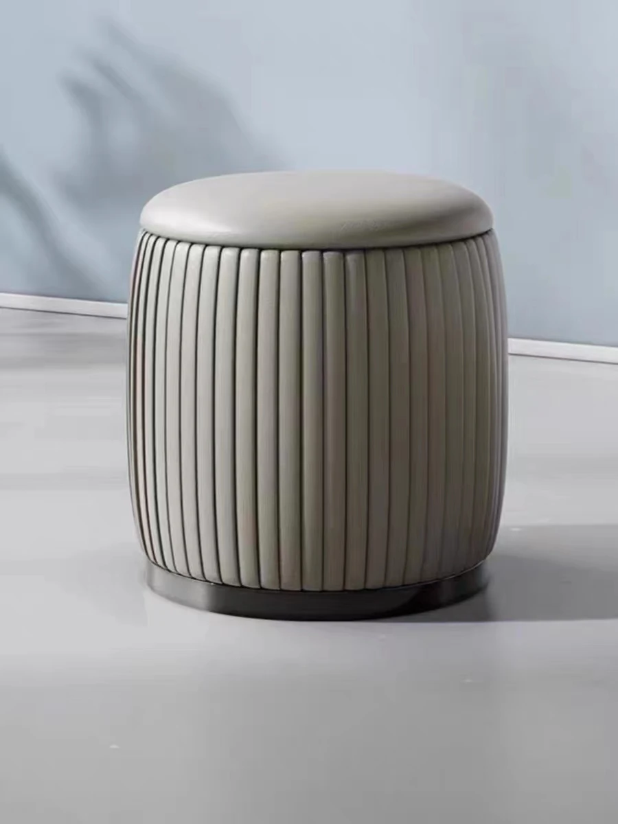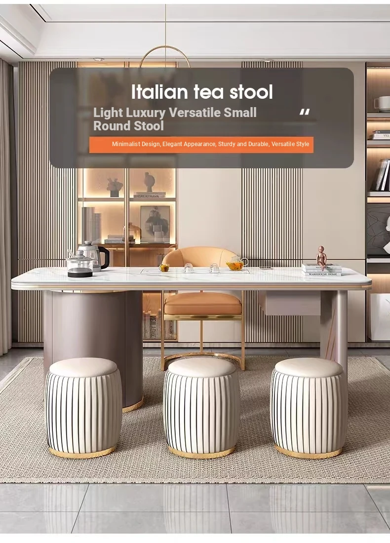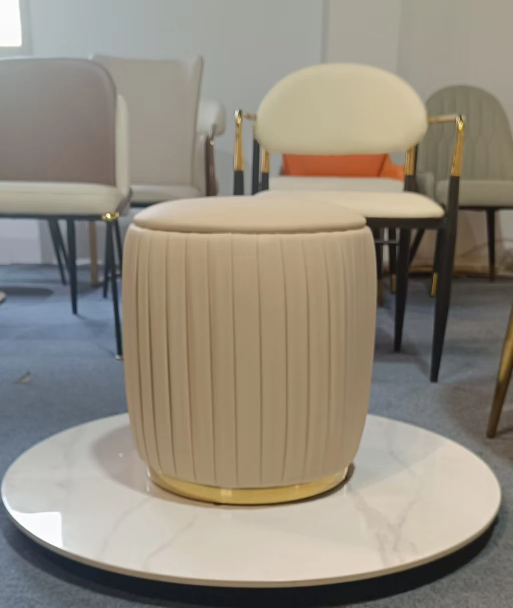 Chic Creamy Round Stool - Stylish Makeup Vanity Seat, Stainless Steel Shoe Bench, Versatile Coffee Table Stool for Home Use, Perfect for Dressing Up and Relaxing.