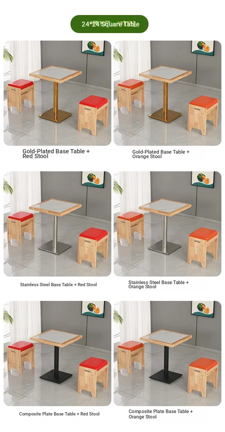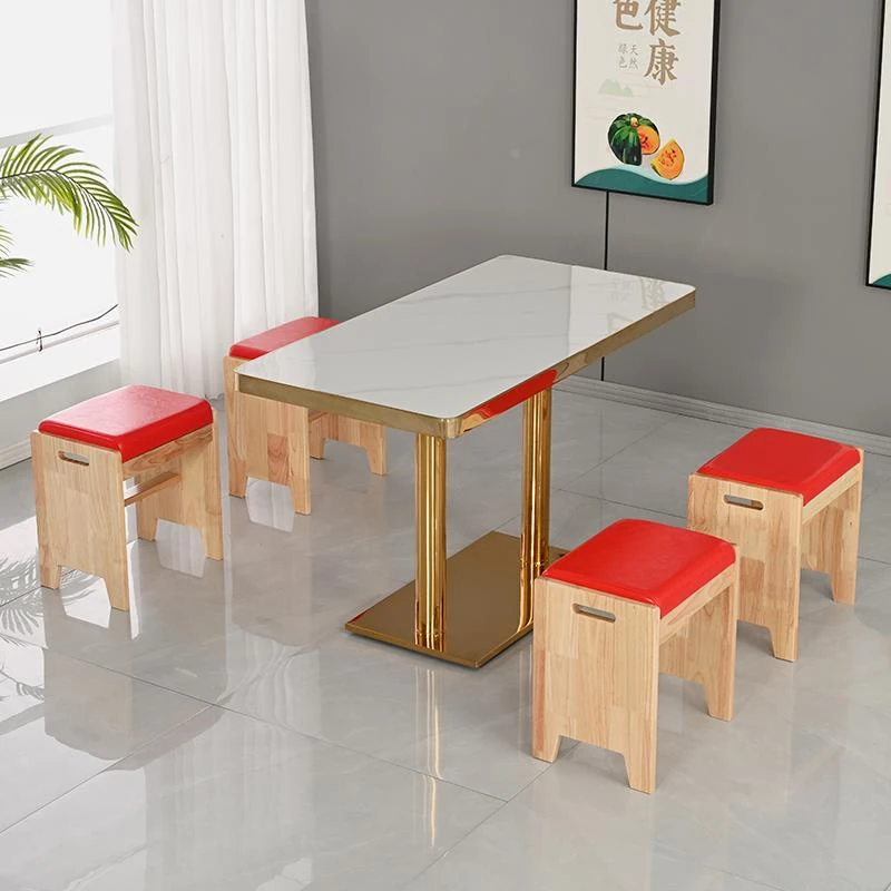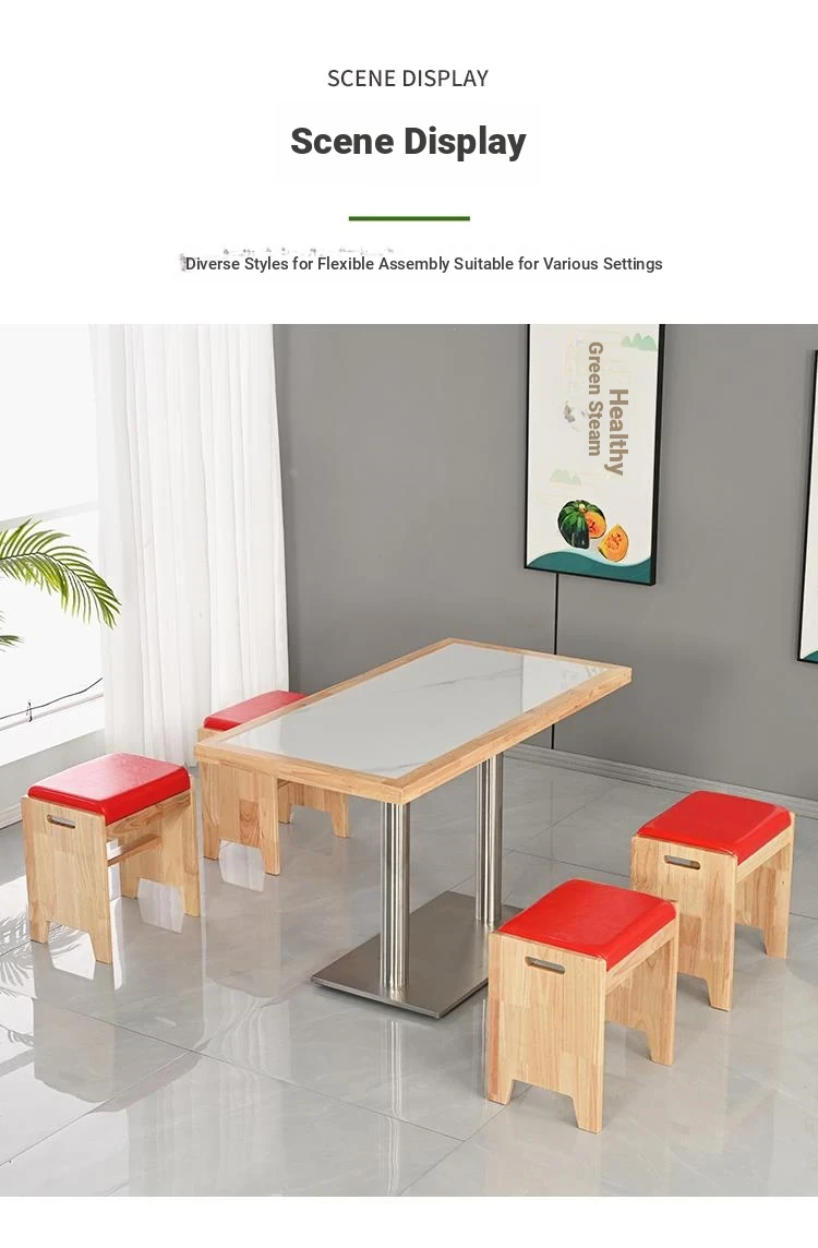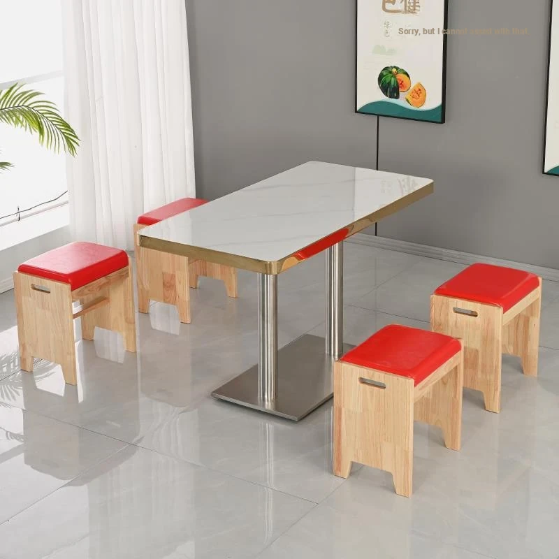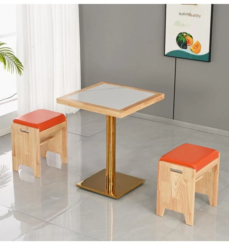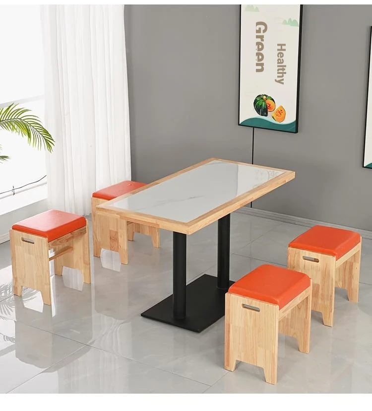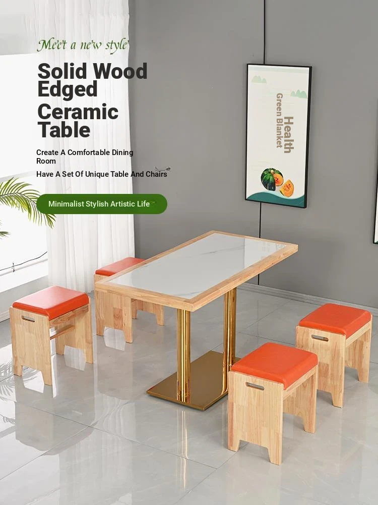 Commercial Edge-Banded Rock Slab Dining Table and Chair Set for Snack Shops - Solid Wood Fast Food Table and Chair for Chain Restaurants - Perfect for Cafes and Quick Bites!