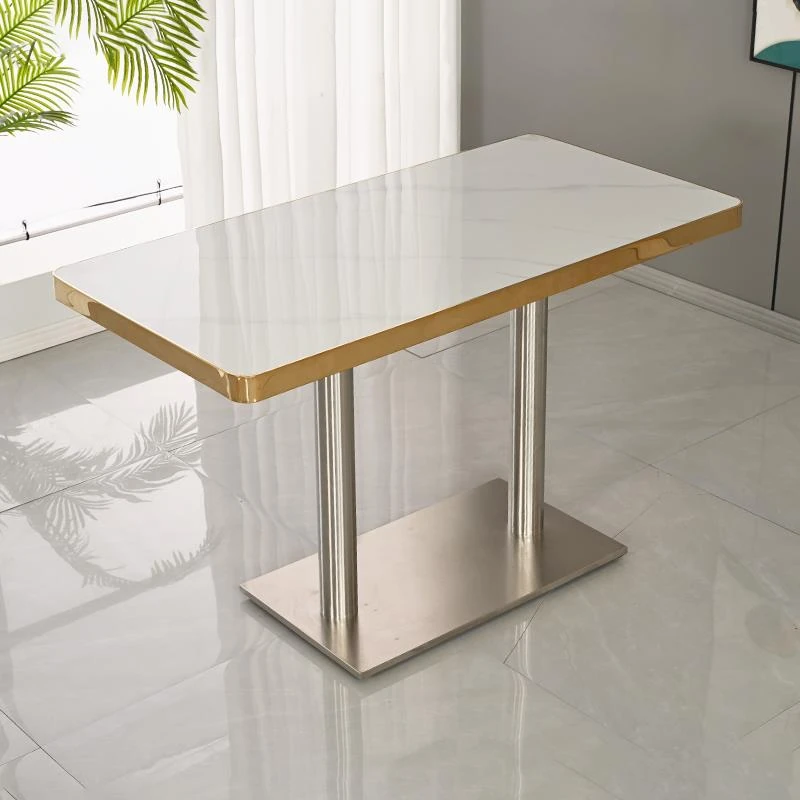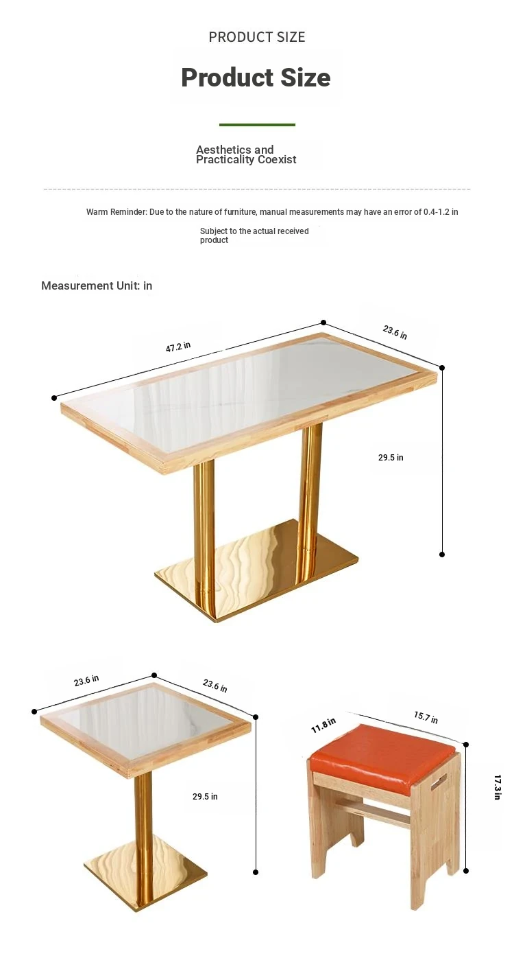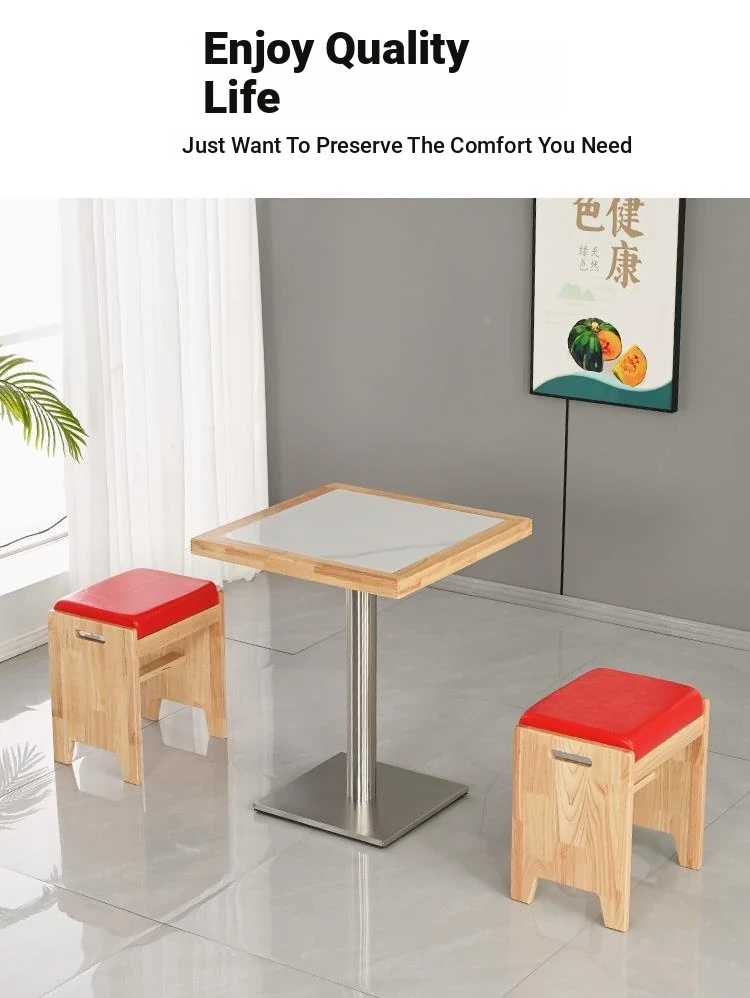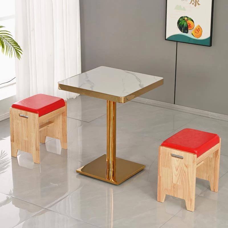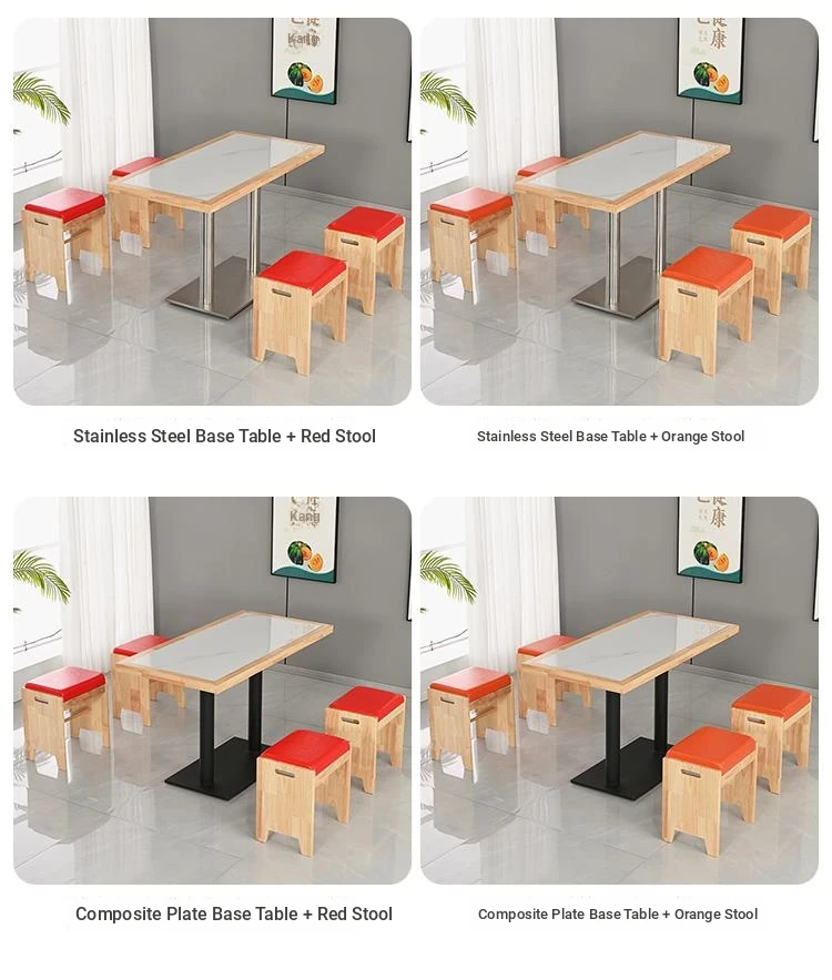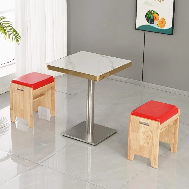 Commercial Edge-Banded Rock Slab Dining Table and Chair Set for Snack Shops - Solid Wood Fast Food Table and Chair for Chain Restaurants - Perfect for Cafes and Quick Bites!