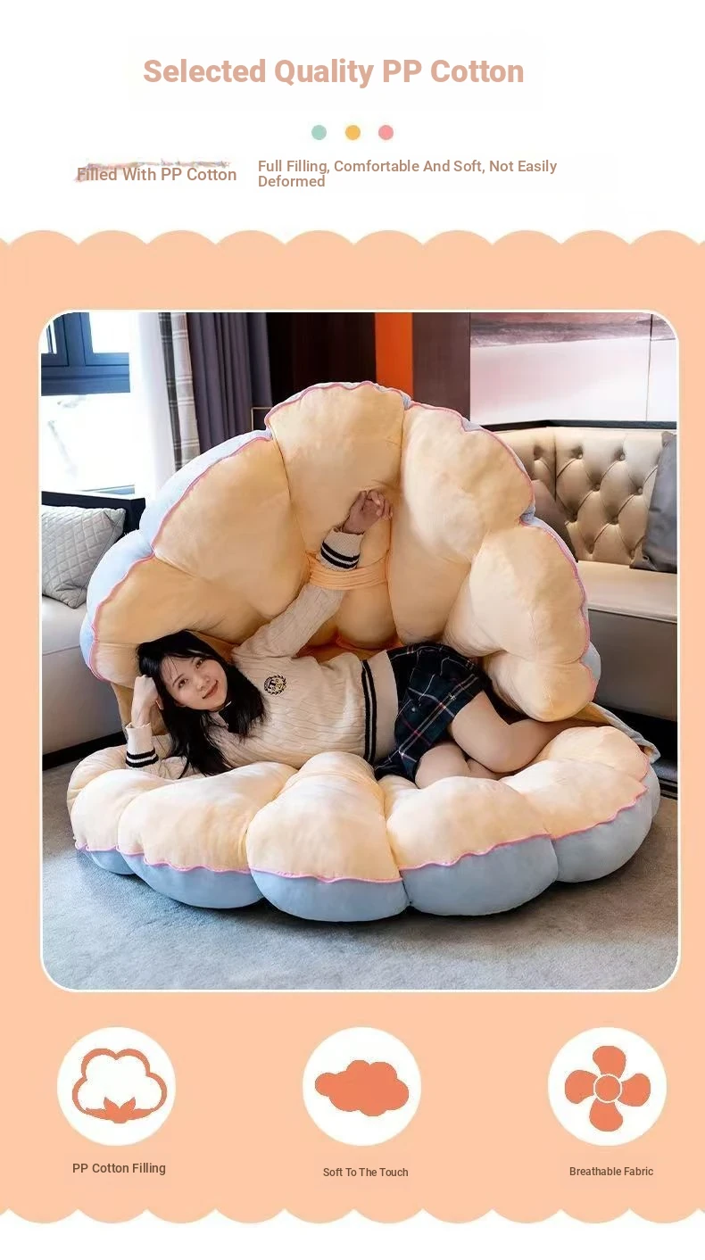 Cute Cartoon Shell Bean Bag Sofa for Kids - Lying and Sleeping Comfortably, Perfect for Bedrooms and Creative Spaces! Embrace Comfort with this Fun and Adorable Design!