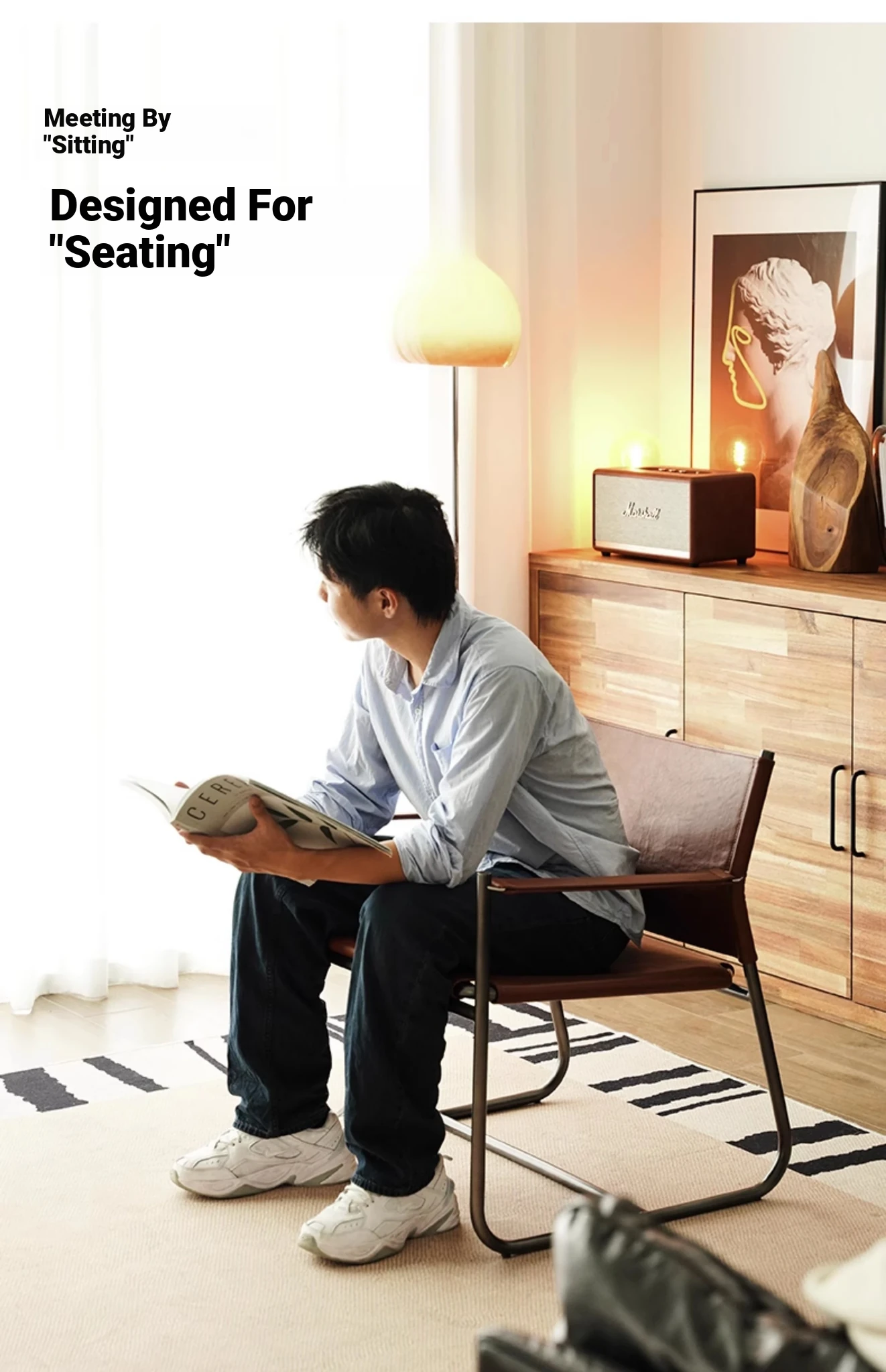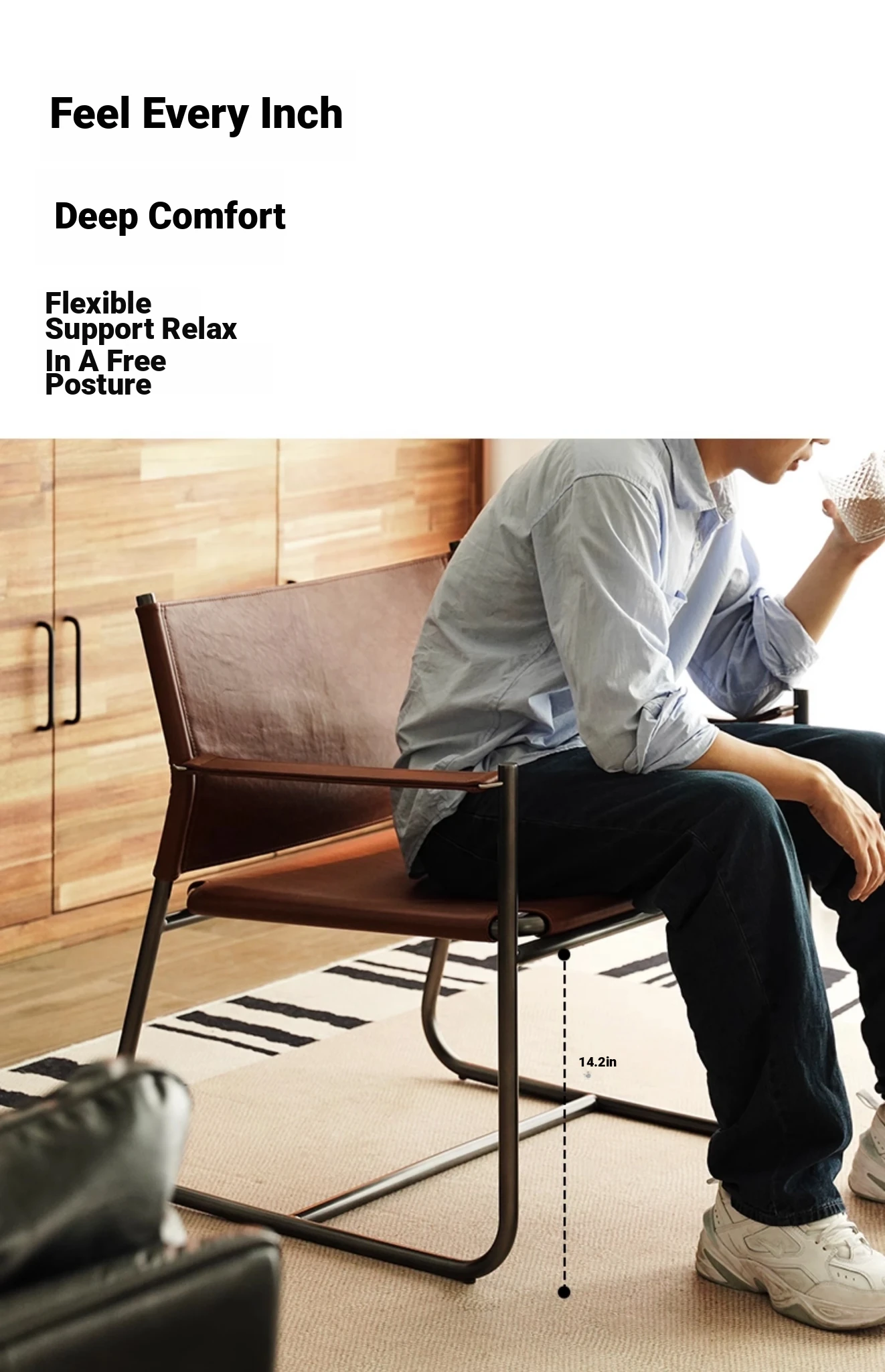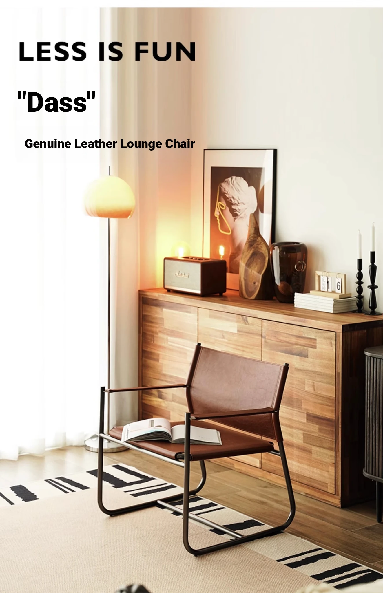 DOJUS Retro Leather Lounge Chair - Stylish Scandinavian Bauhaus Design for Your Living Room - Perfect for Relaxation and Reading