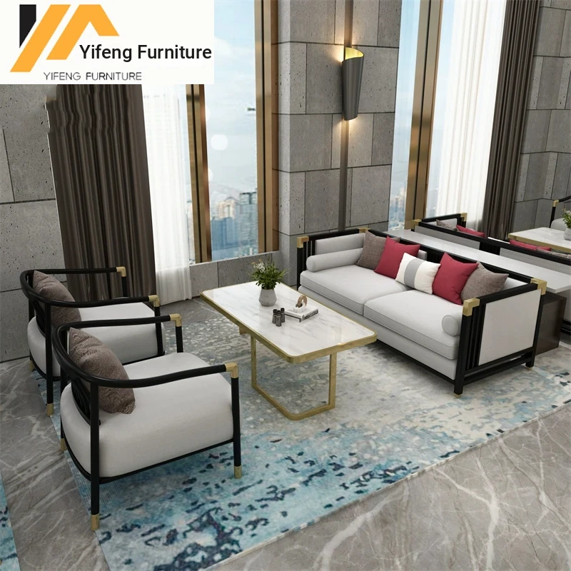 Elegant New Chinese-Style Sofa Set for Sales Office - Perfect for Hotel Tea Houses and Reception Areas, Ideal for Showrooms and Relaxation Spaces.