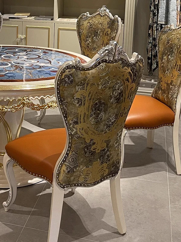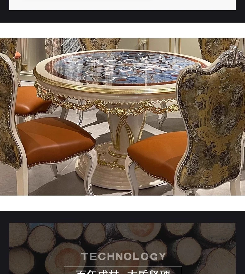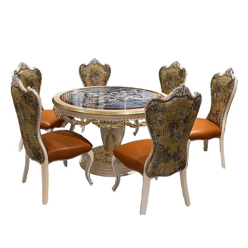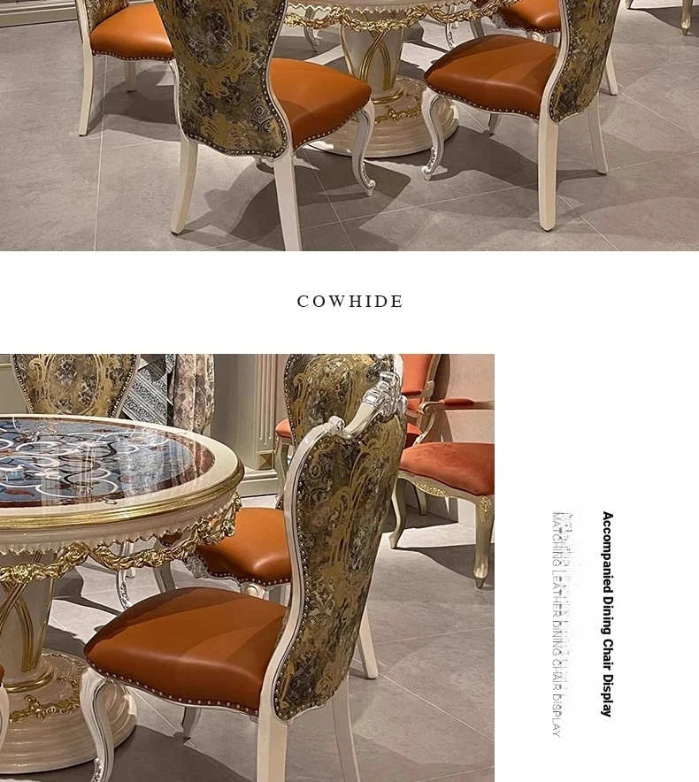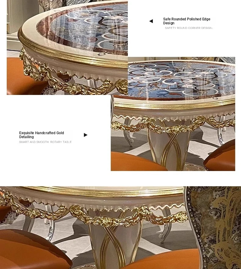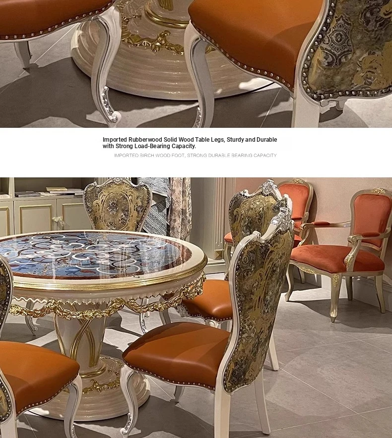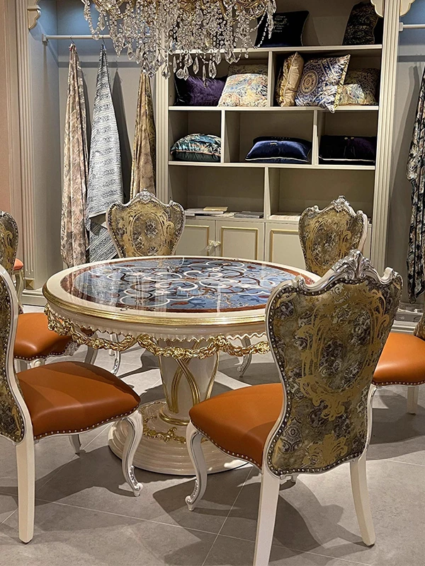 French Court Style Solid Wood Round Dining Table Set - European Shell Painted Dining Table for New Classic Italian Villa Decor