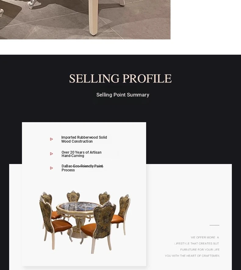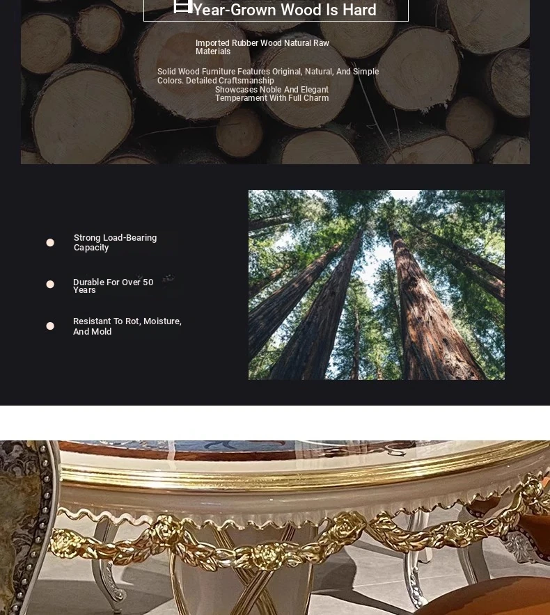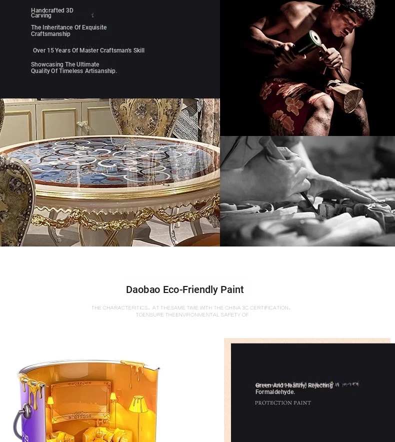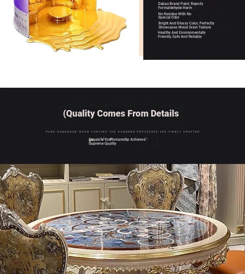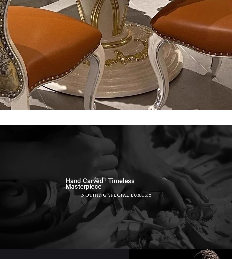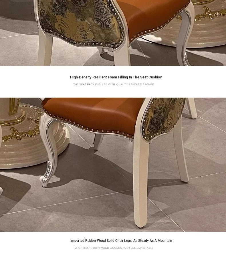 French Court Style Solid Wood Round Dining Table Set - European Shell Painted Dining Table for New Classic Italian Villa Decor