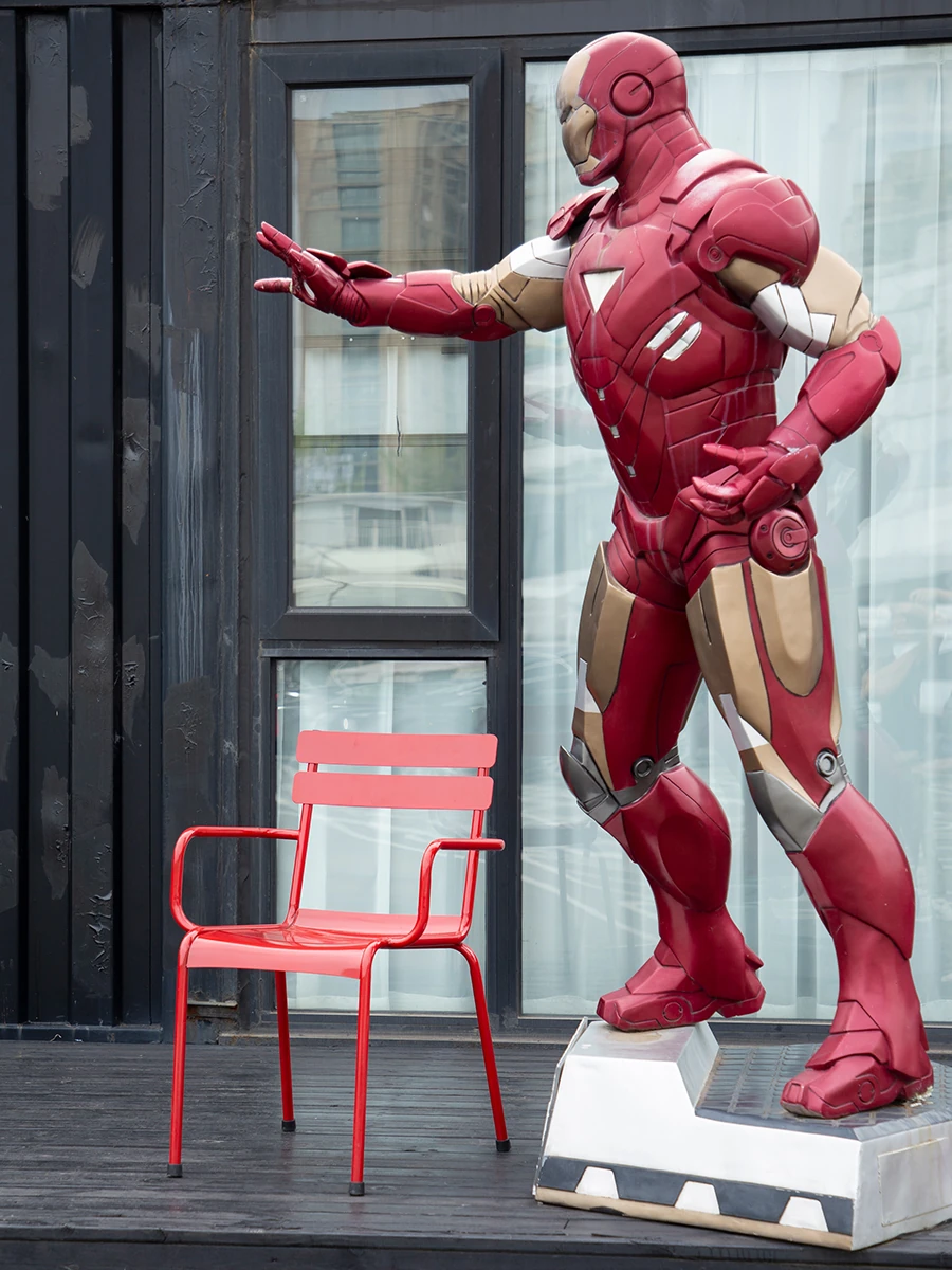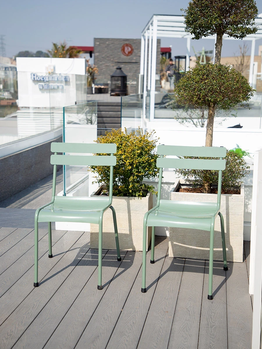 French Outdoor Patio Dining Chairs - Stylish Iron Garden Chairs for Terrazzo, Perfect for Trendy Milk Tea and Coffee Shops, Comfortable Lounge Chairs with Backrest for Relaxation