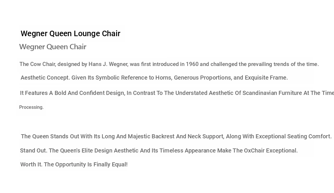 Italian Modern Wegner Queen Chair - Luxurious Leather Lounge Chair for Living Room and Bedroom, Minimalist Design for Home Comfort
