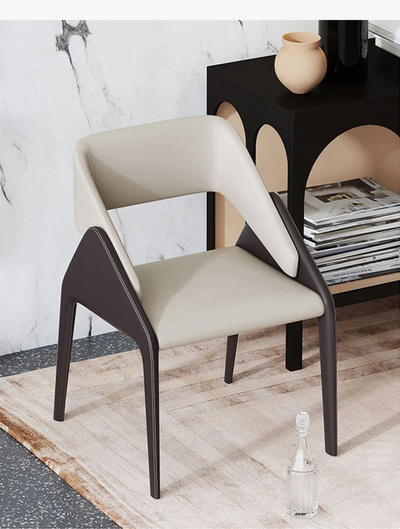 Italian Nordic Style Saddle Leather Dining Chair - Modern Minimalist Backrest Chair for Home Dining Room, Simplistic Designer Desk Stool