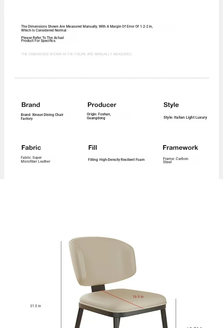 Italian Style Dining Chair - Premium Creative Design for Kitchen Island & Dining Table, Modern Minimalist Backrest Chair for Home Living Room Dining Experience