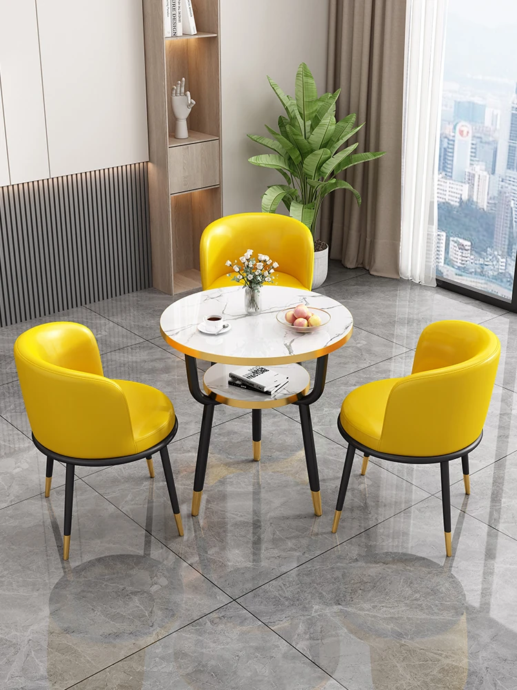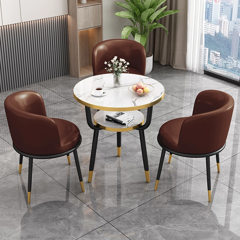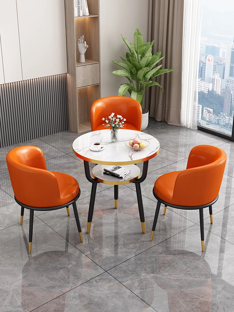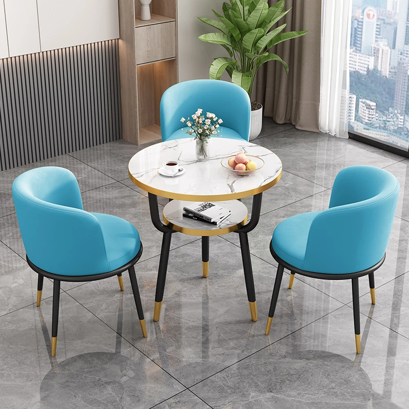 Minimalist Luxury Conference Table and Chair Set - Perfect for Coffee Shops, Lounges, and Office Reception Areas. Stylish Small Round Table for Client Meetings and Casual Gatherings.