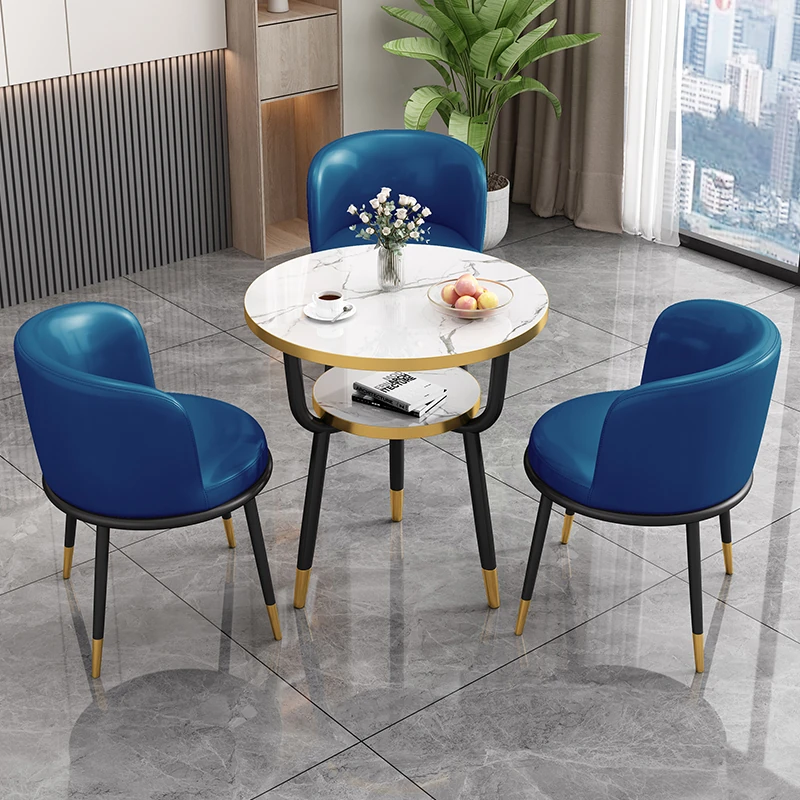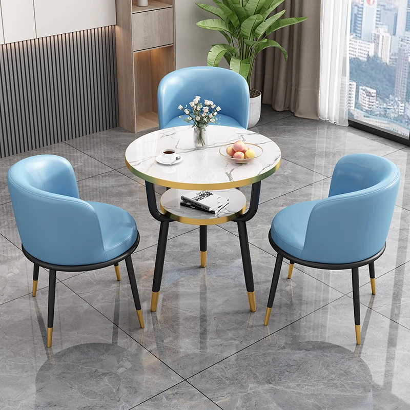 Lake blue 60 imitation marble pattern table +3 leather chair