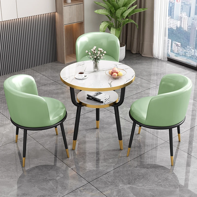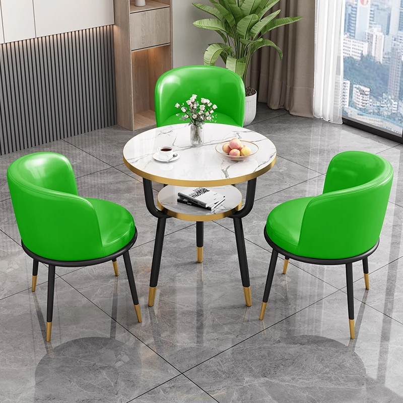 Pea Green 60 imitation marble pattern table +3 leather chair
