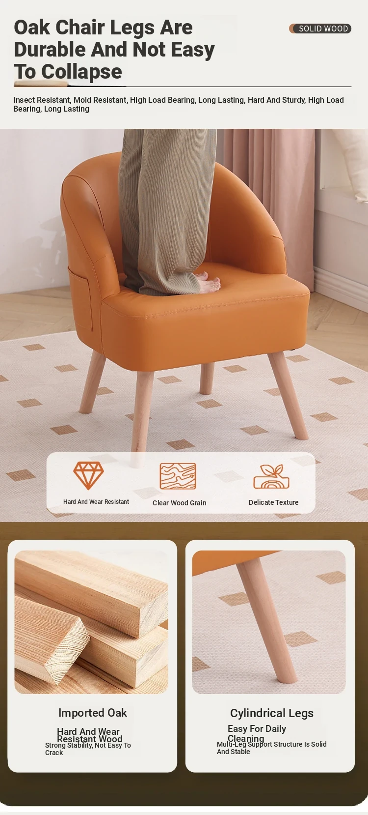 Orange [Wood leg leather Waterproof anti-fouling anti-scratch]]