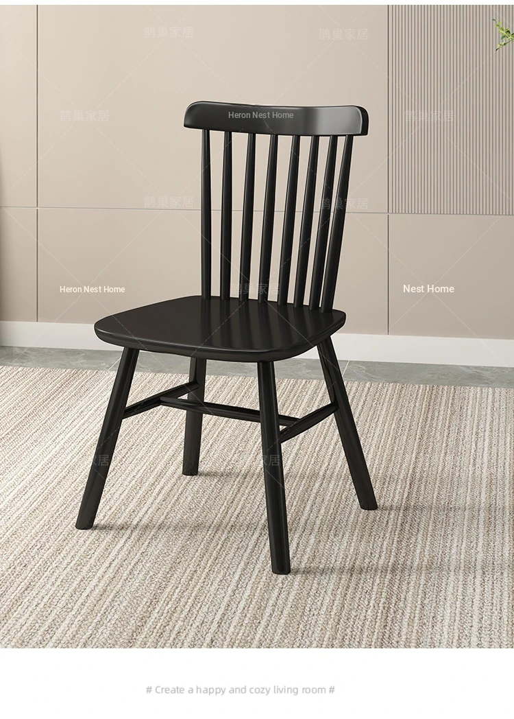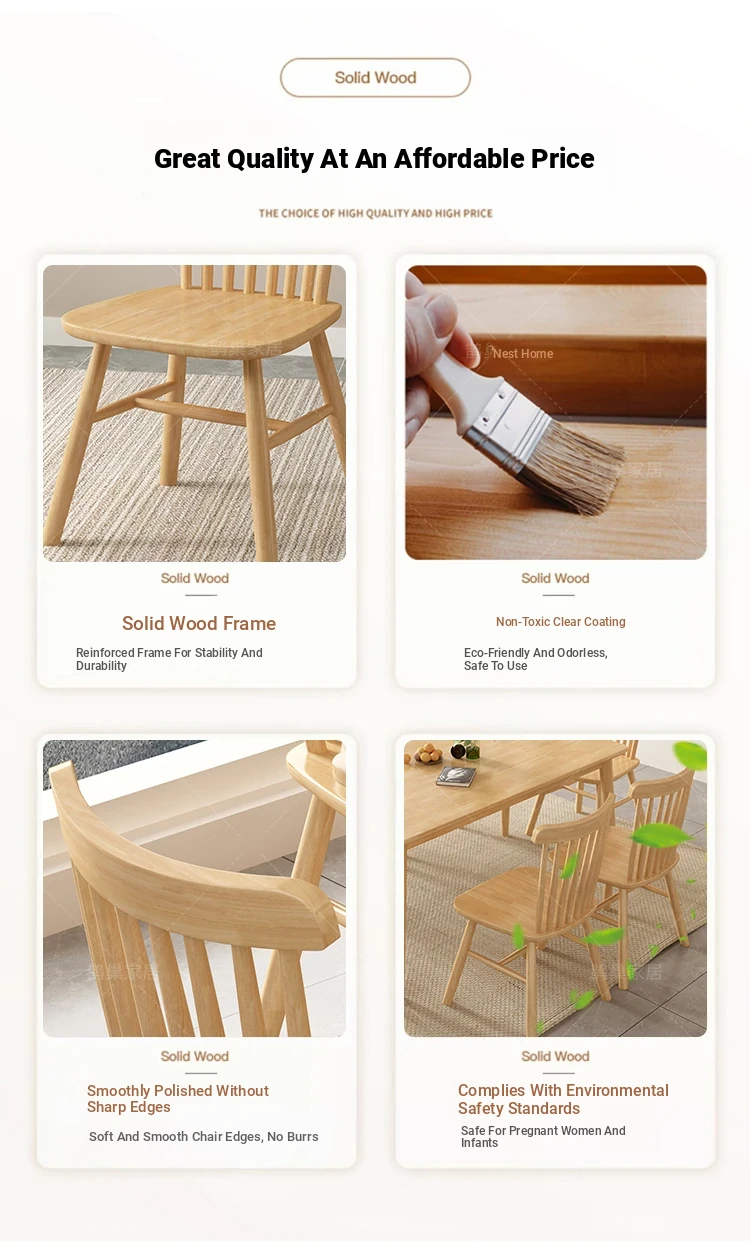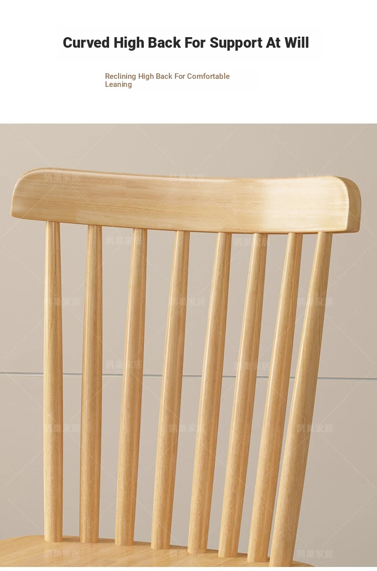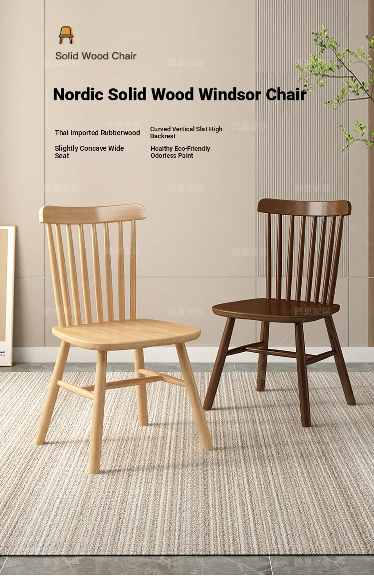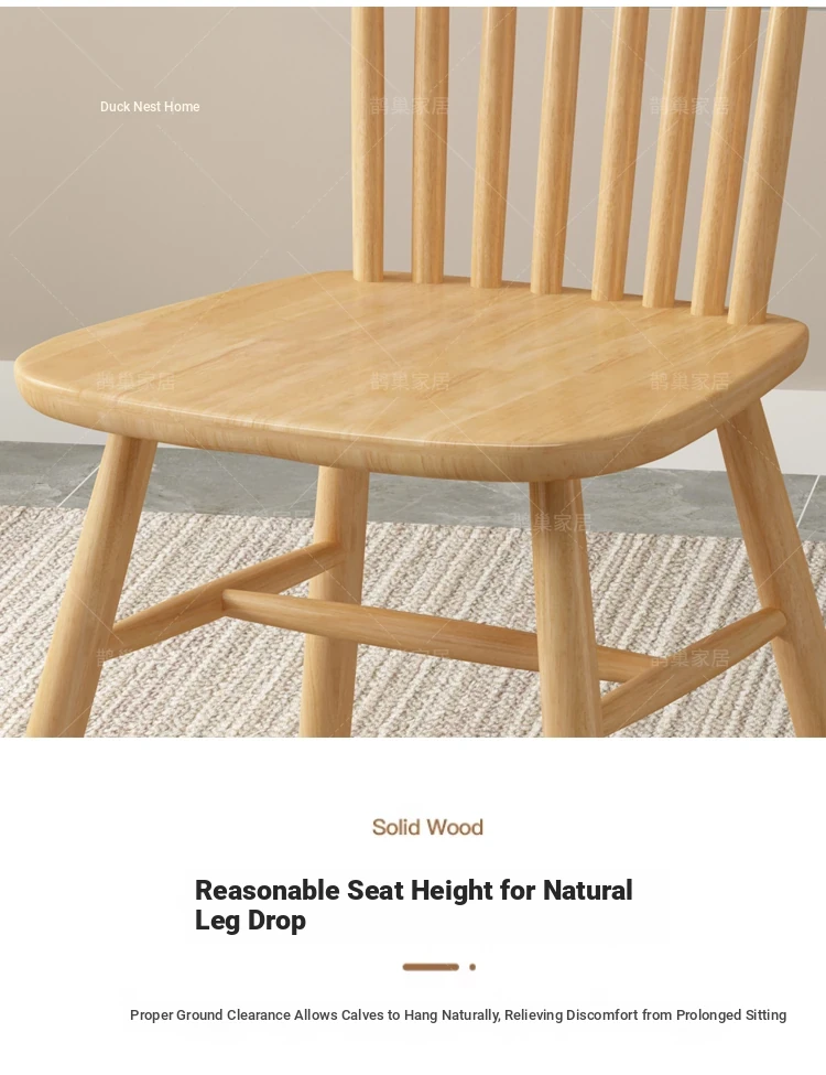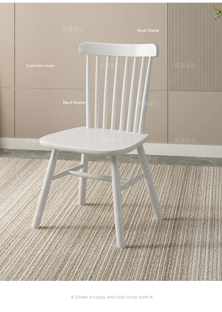 Modern Minimalist Solid Wood Dining Chairs - Stylish Windsor Backrest Design for Home, Perfect for Dessert and Coffee Tables in Creamy Aesthetic.