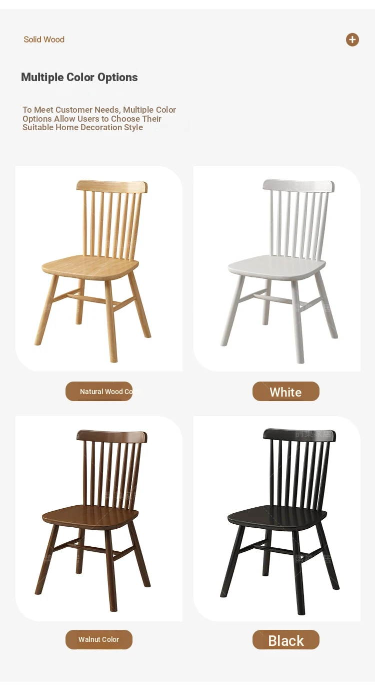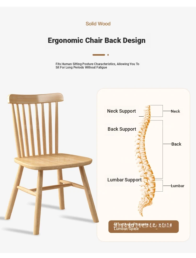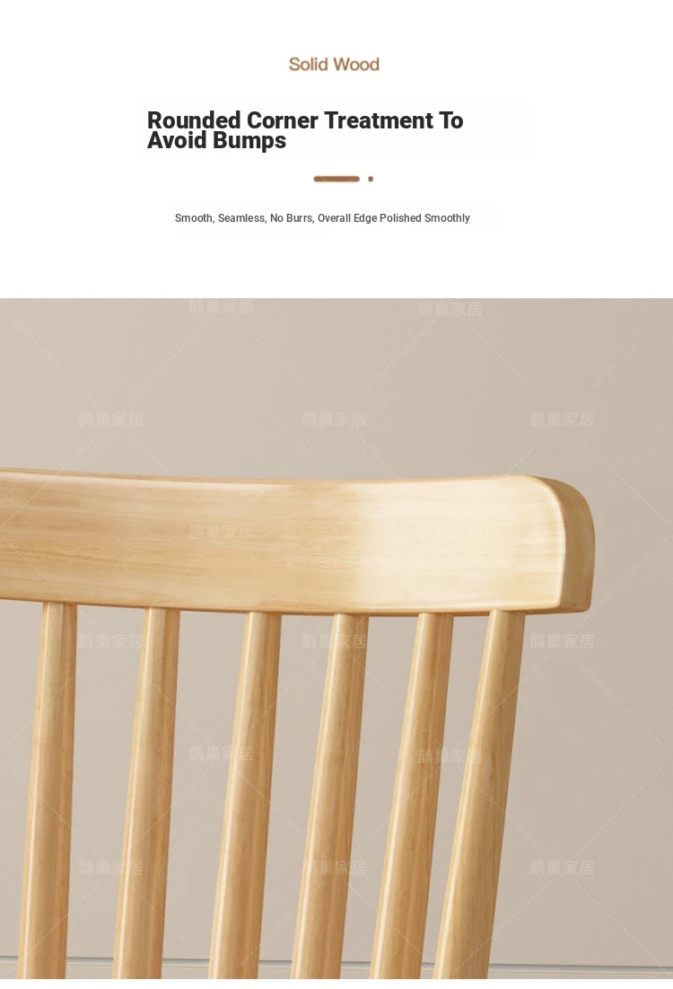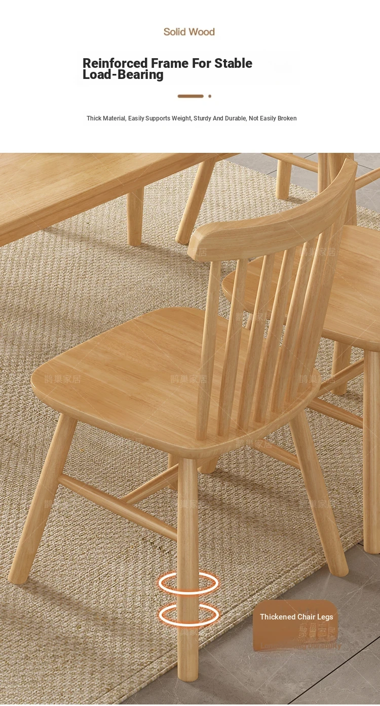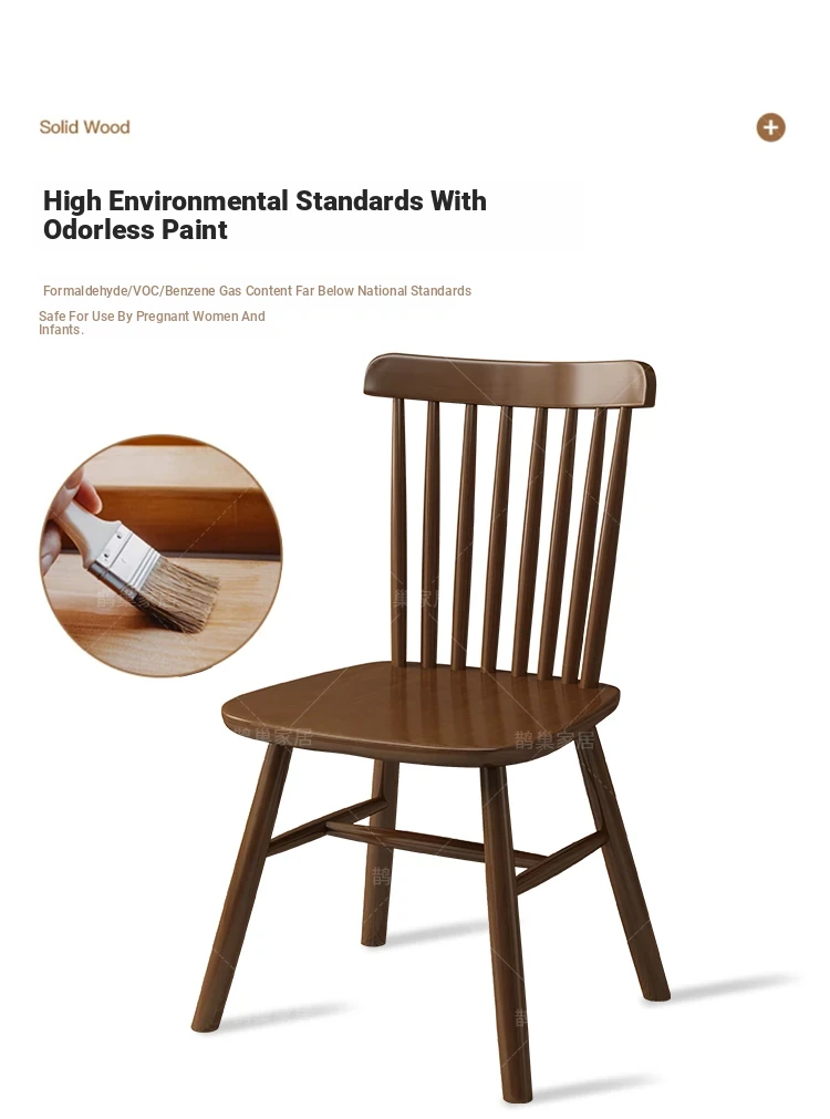 Modern Minimalist Solid Wood Dining Chairs - Stylish Windsor Backrest Design for Home, Perfect for Dessert and Coffee Tables in Creamy Aesthetic.