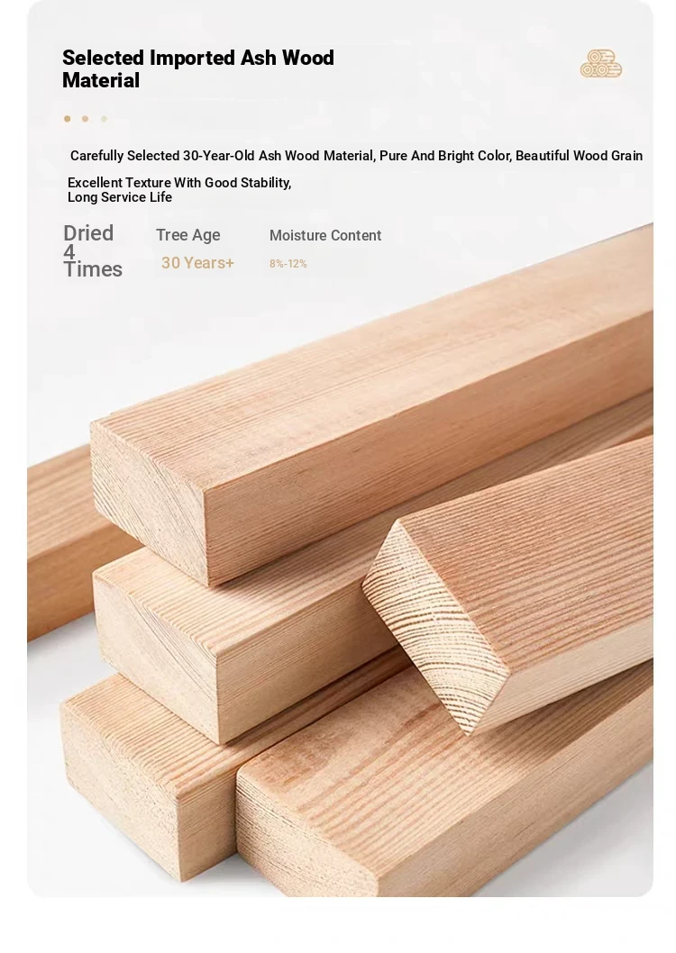 Nordic Ash Wood Solid Dining Chair - Designer Style, Light Luxury, Mid-Century High-End, Comfortable Backrest Chair for Home, Relaxation, and Meetings