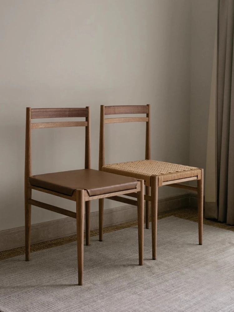 Nordic Minimalist Luxury Stool - Natural Wood and Woven Rope Suspended Chair, Wabi-Sabi Style Dining Chair, Solid Wood Outdoor Tavern Seat