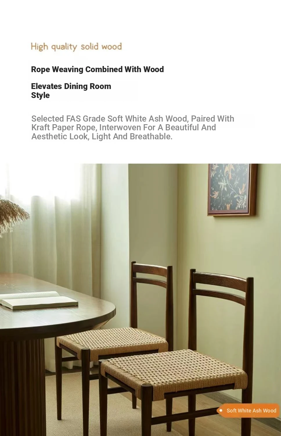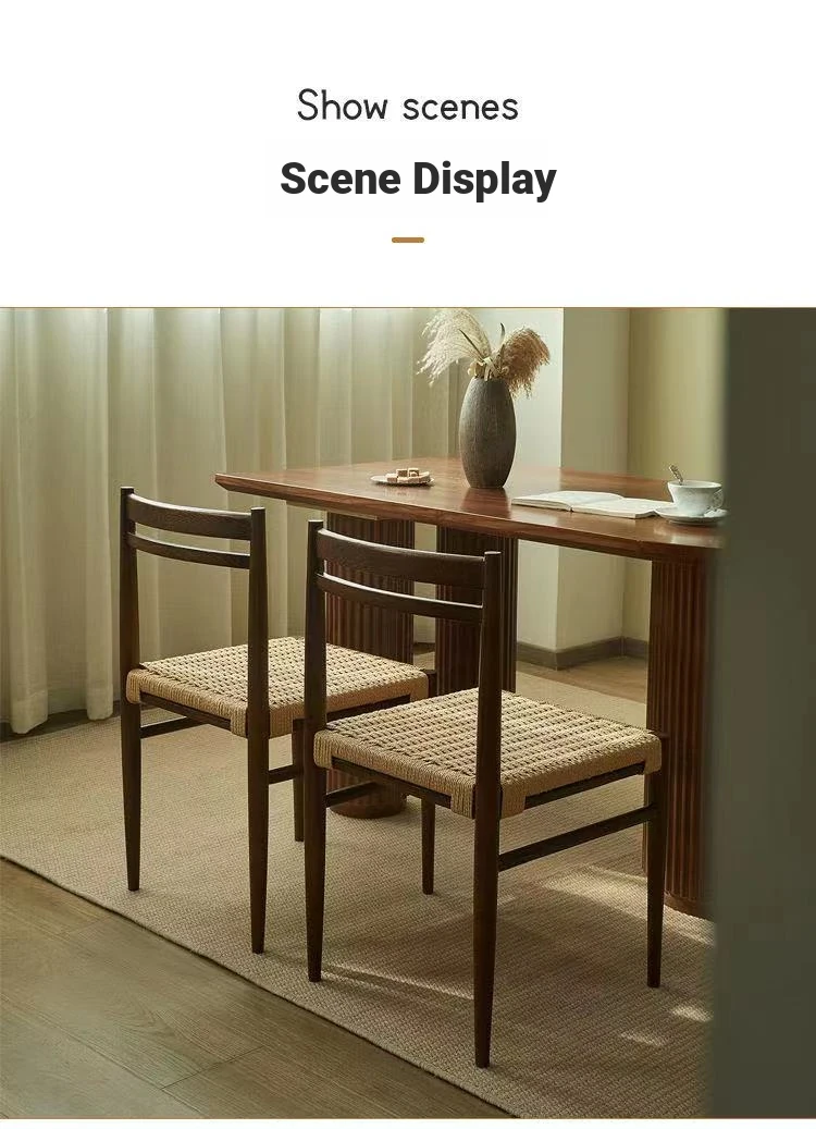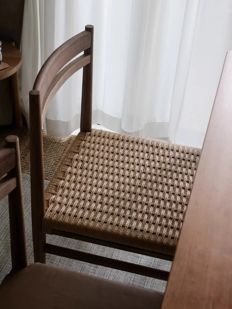 Walnut color + rope woven chair surface