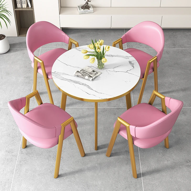 80 Round Table +4 Pink Leather Chair-Gold Feet