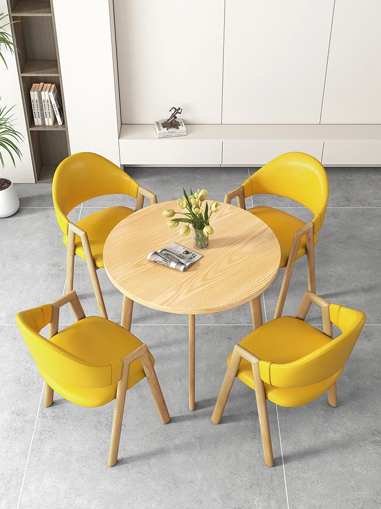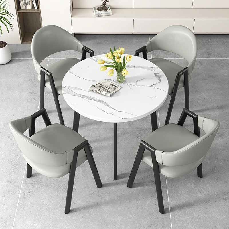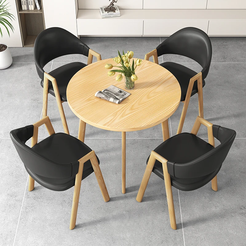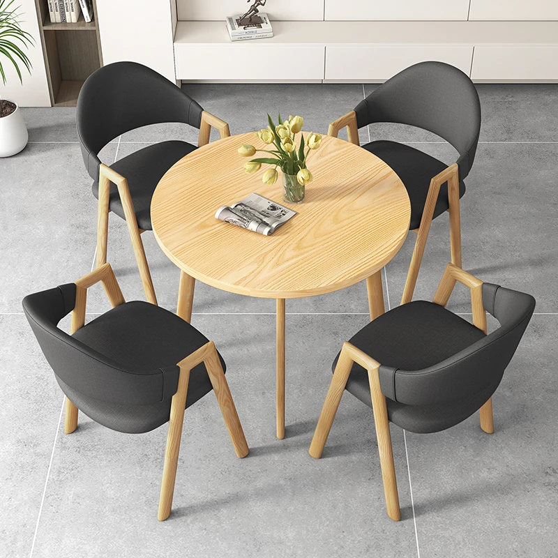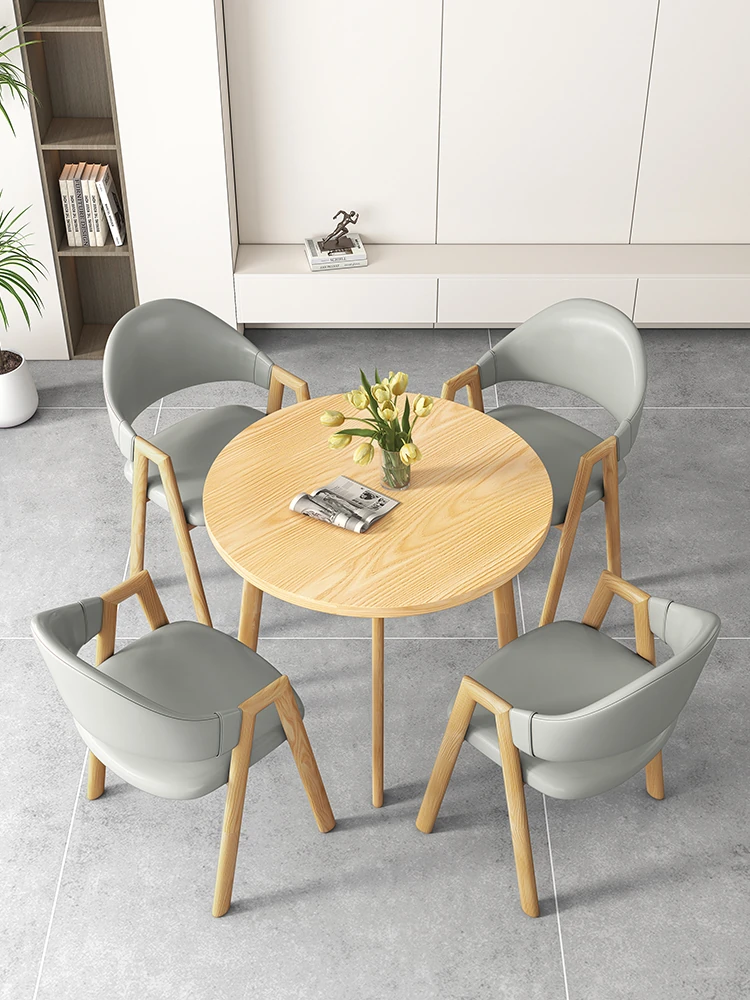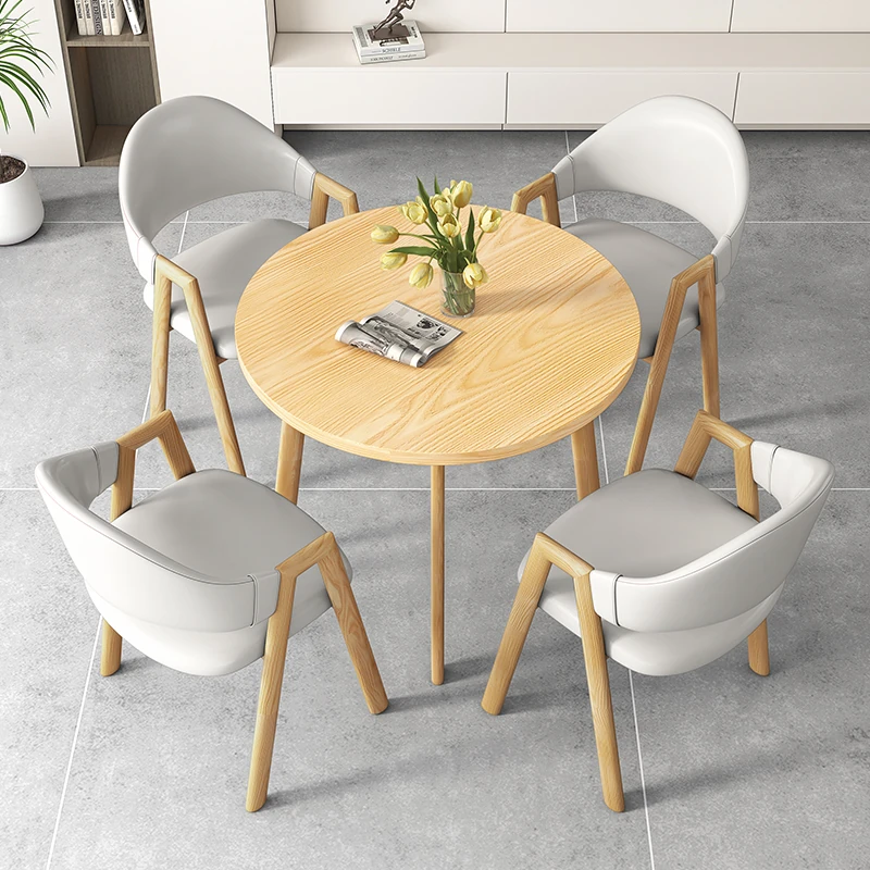 Nordic Minimalist Round Table and Chair Set - Perfect for Meetings, Leisure, and Training. Ideal for Balconies and Reception Areas. Stylish and Functional Furniture for Modern Spaces.