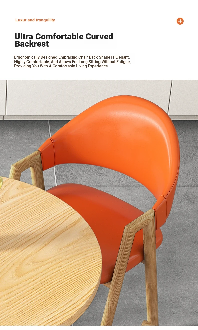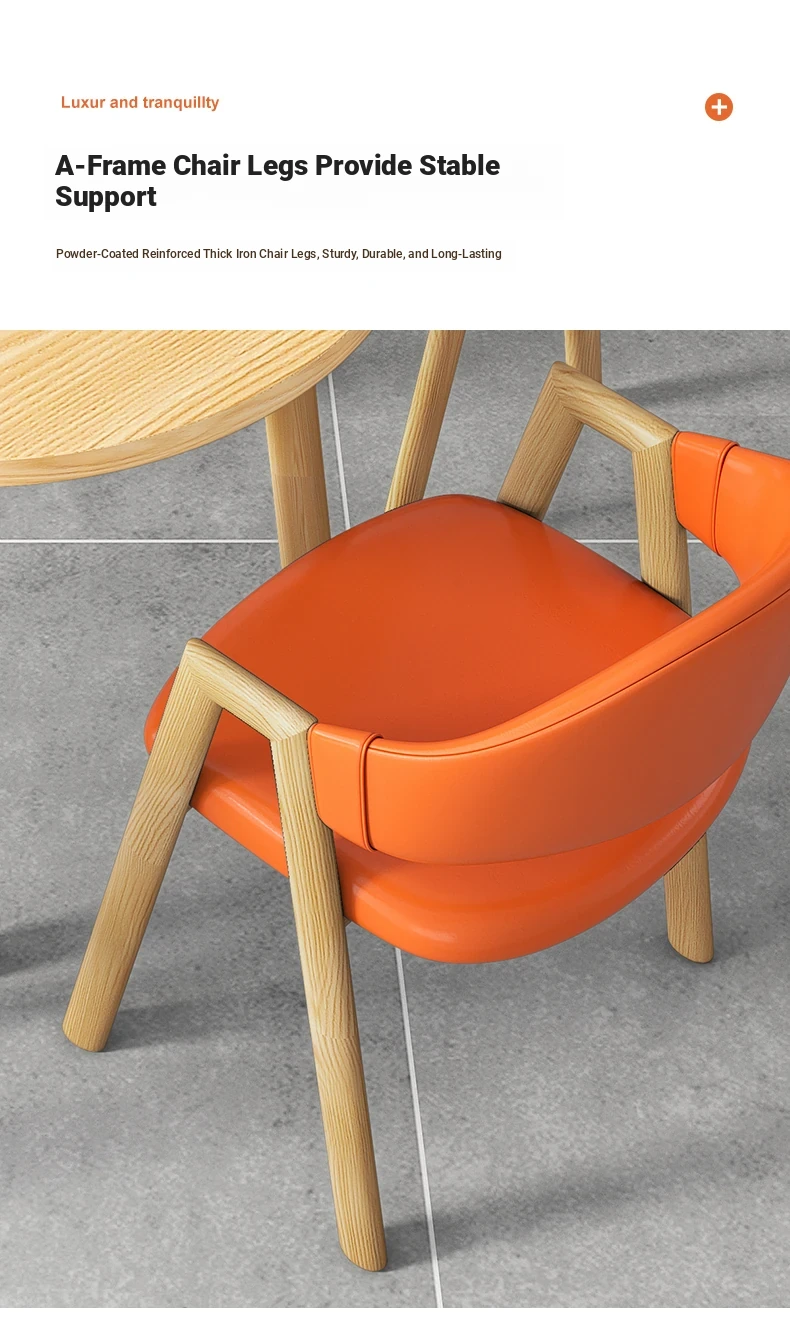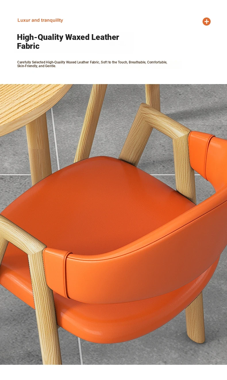 80 Round Table +4 Orange Leather Chair-Log Color Foot