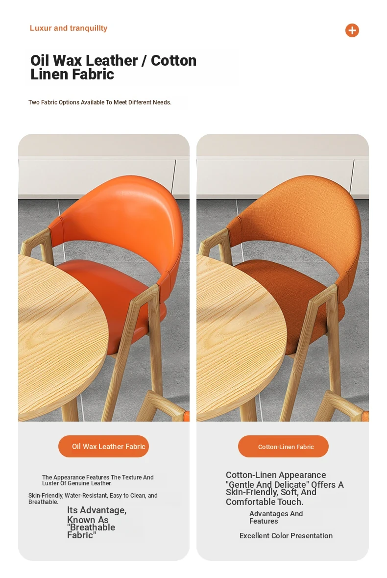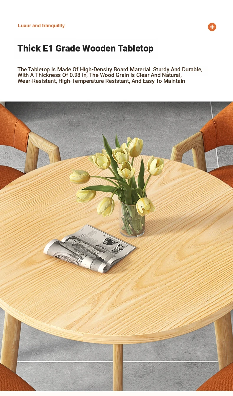 80 Round Table +4 orange cloth chair-log color feet