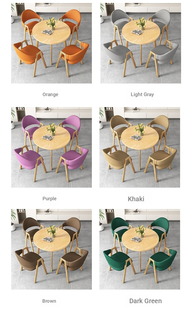 80 Round Table +4 khaki Cloth Chair-Log Color Feet