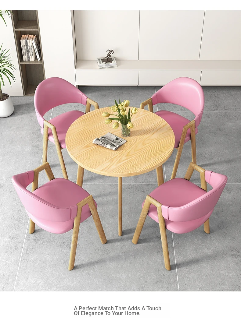 80 Round Table +4 Pink Leather Chair-Log Color Foot