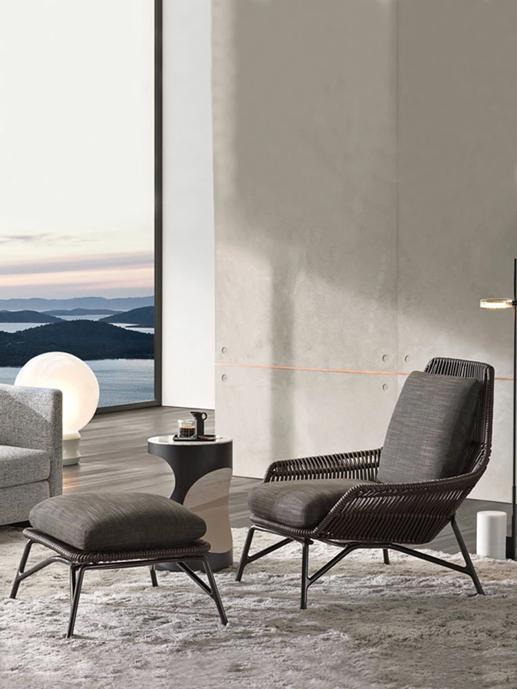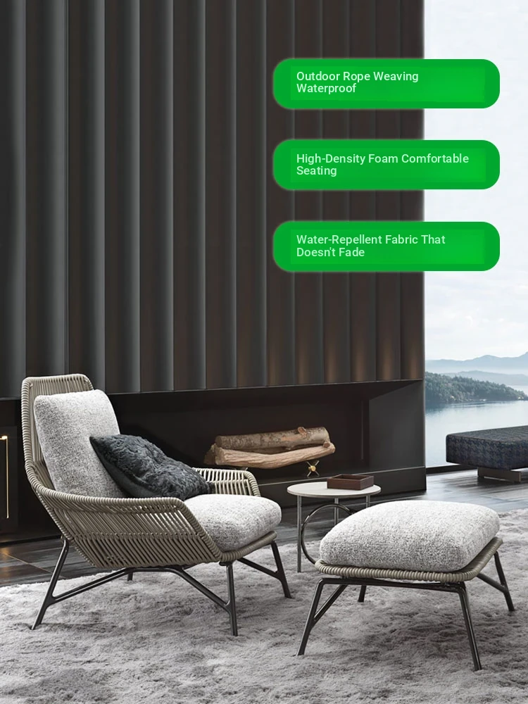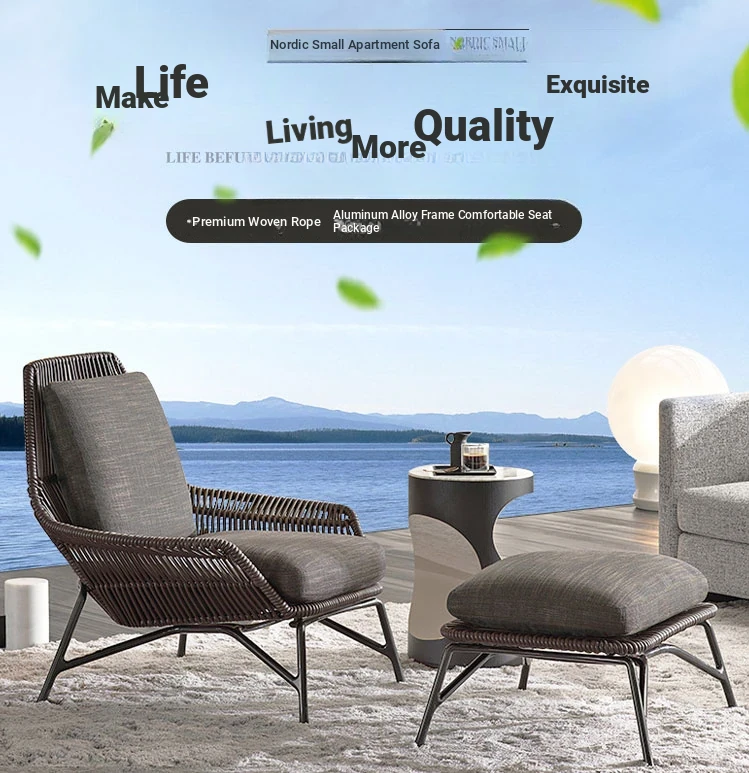 Nordic Outdoor Rattan Lounge Chair - Stylish and Comfortable Patio Sofa for Villas, Gardens, and Sunrooms - Perfect for Relaxing in Your Outdoor Spaces