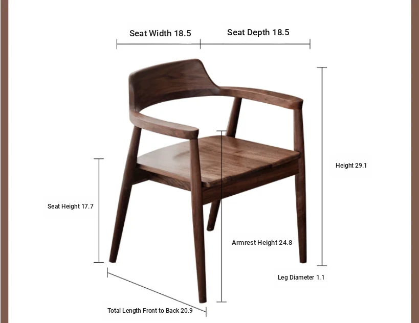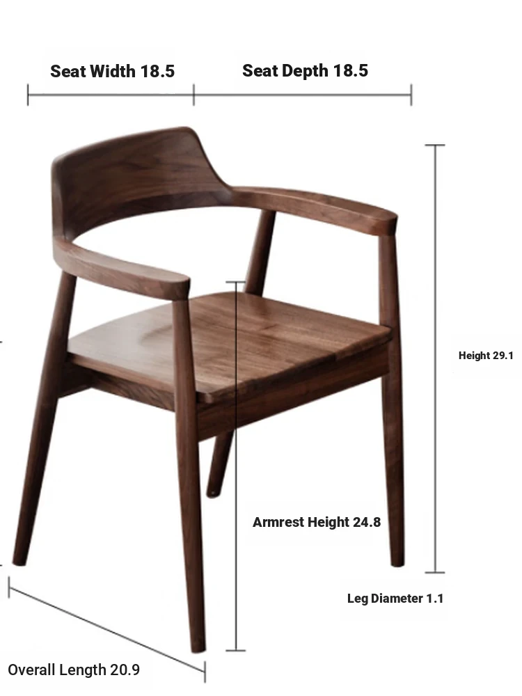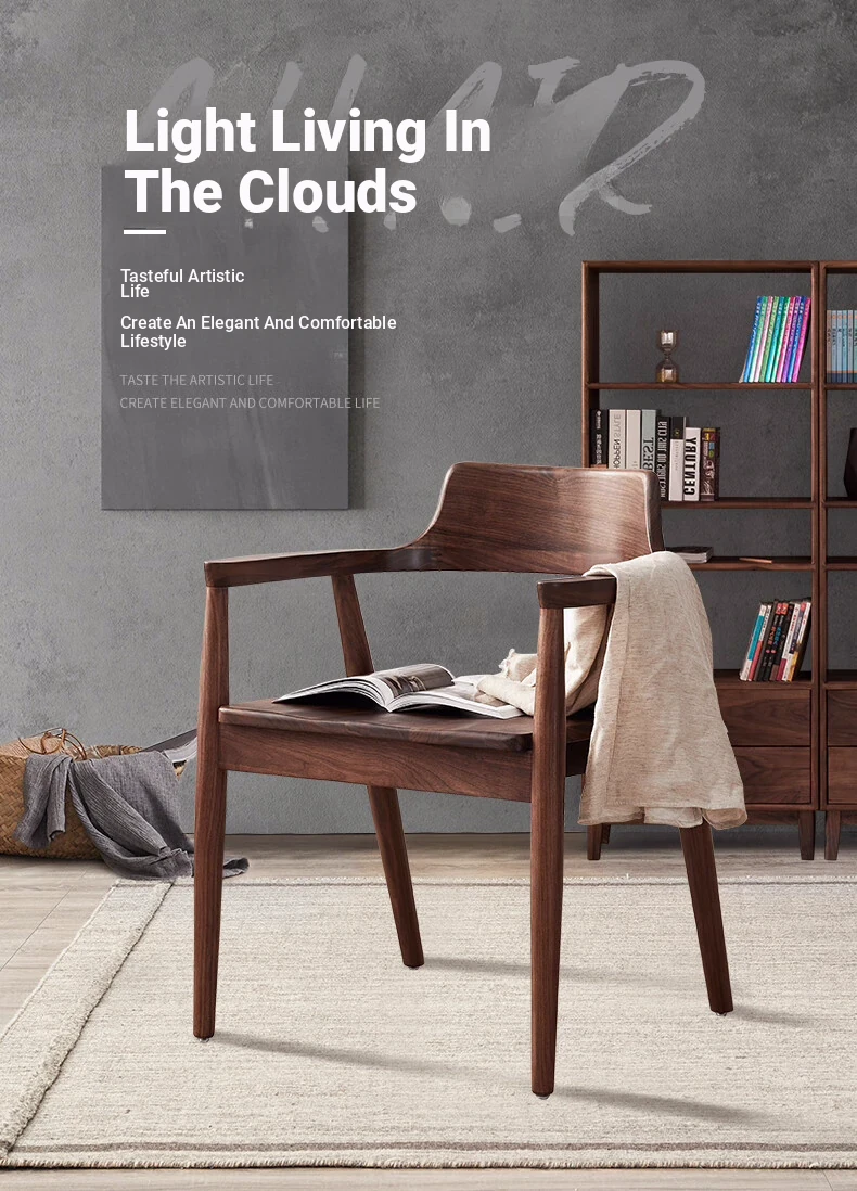 North American Black Walnut Chair - Hiroshima Solid Wood Dining Chair with Backrest and Armrests, Perfect for Relaxation in Bedroom, Office, or as a Stylish Desk Chair in Chinese Style